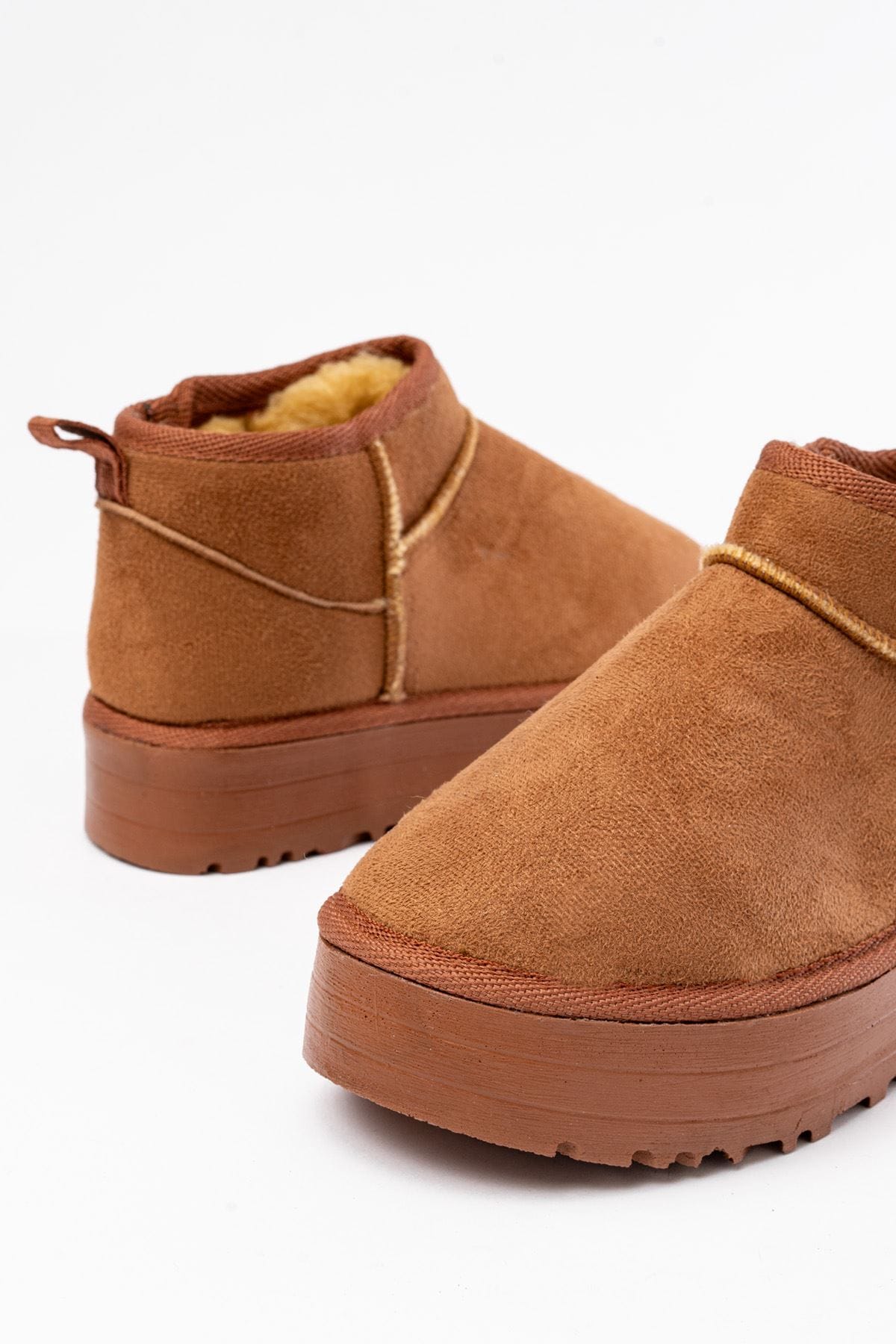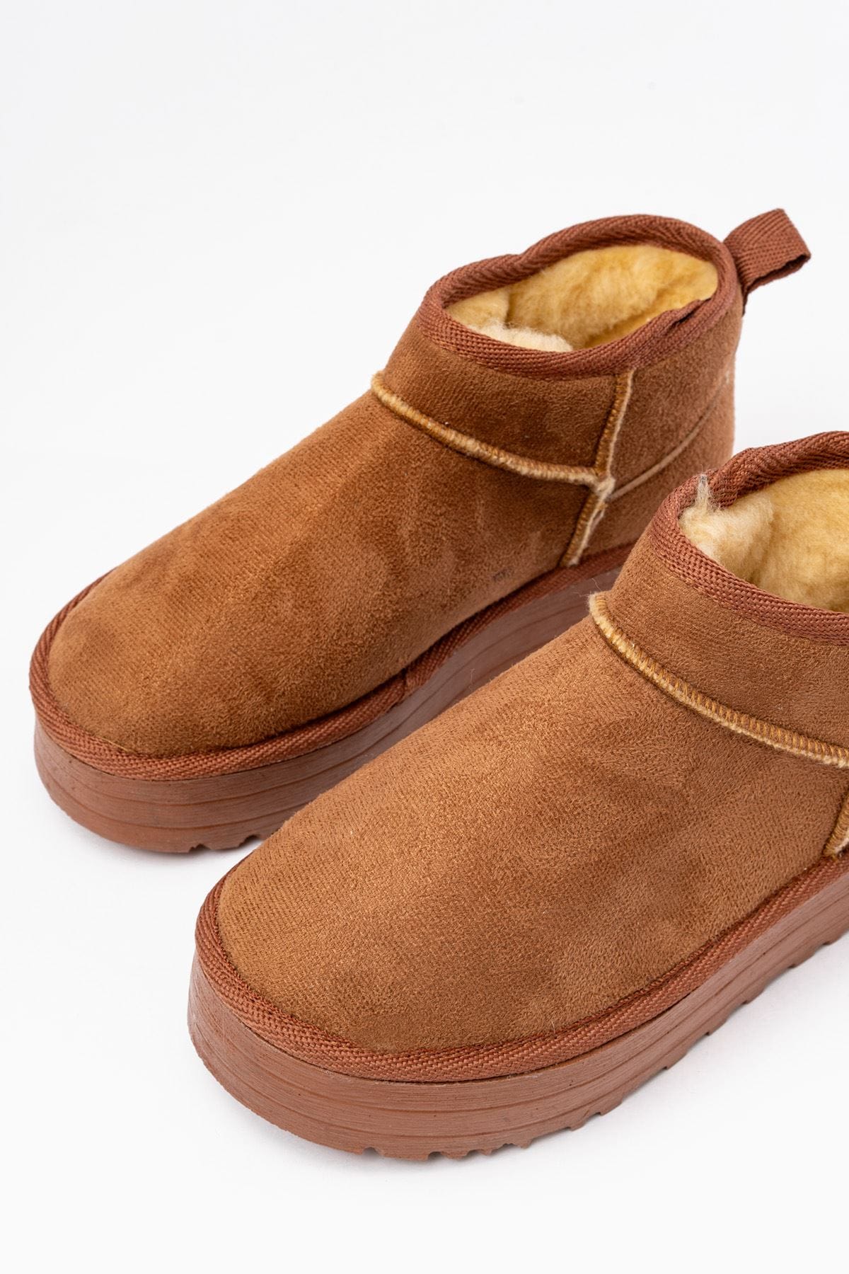 NDR-2850 Taba Süet İçi Kürklü Kışlık Kapalı Burun Kadın Günlük Terlik