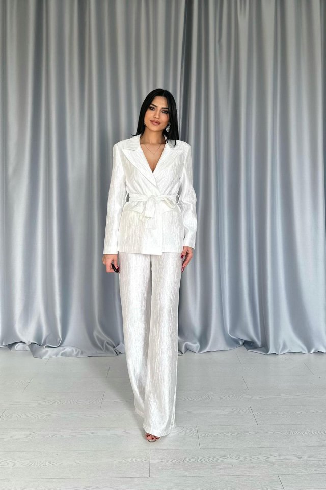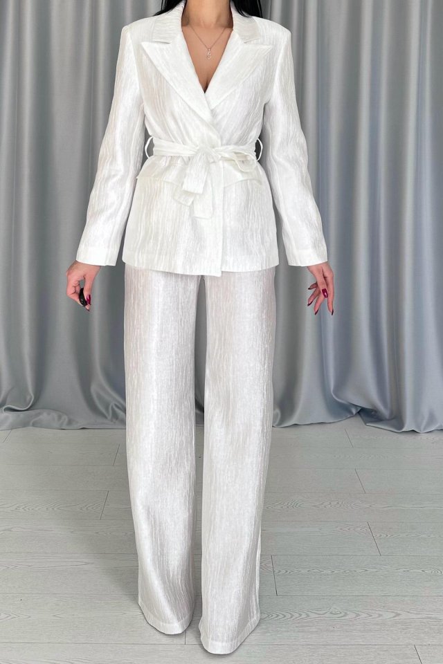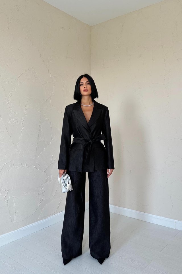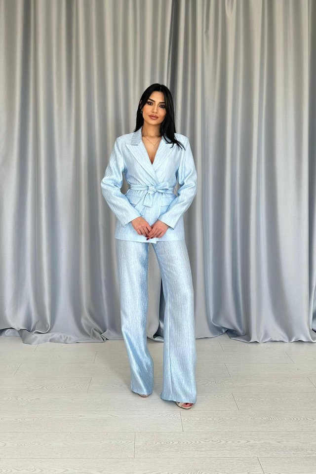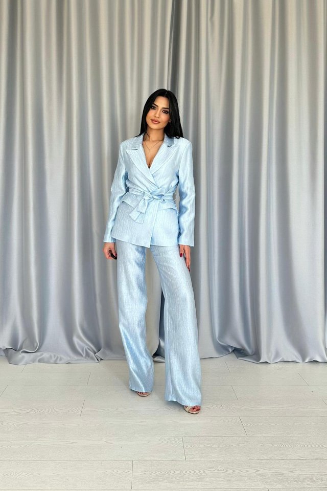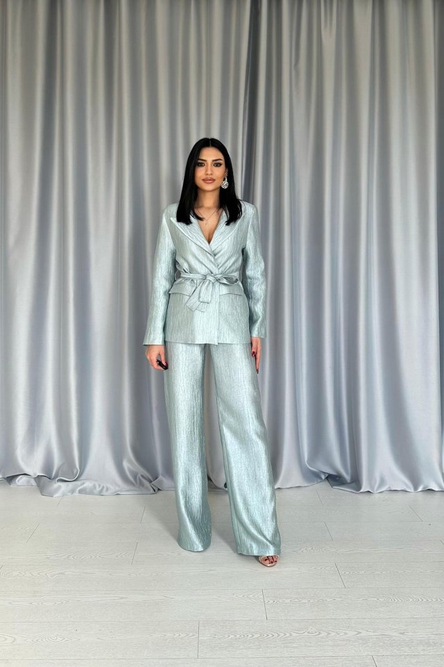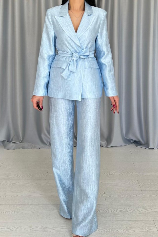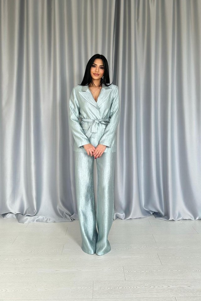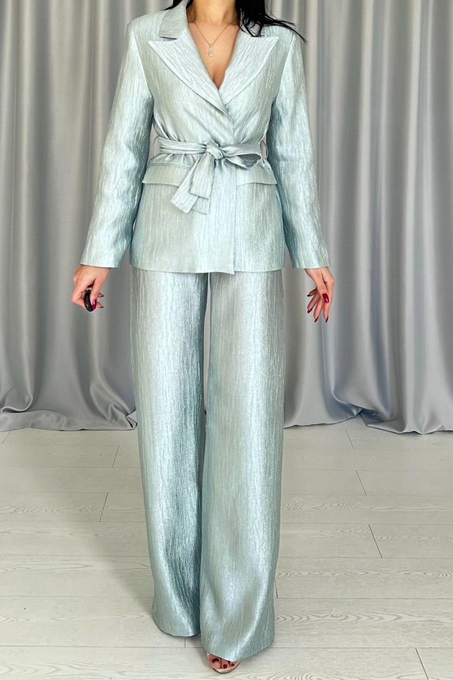 Neon Beli Kuşaklı Ceket Ve Pantolon Parlak Takım