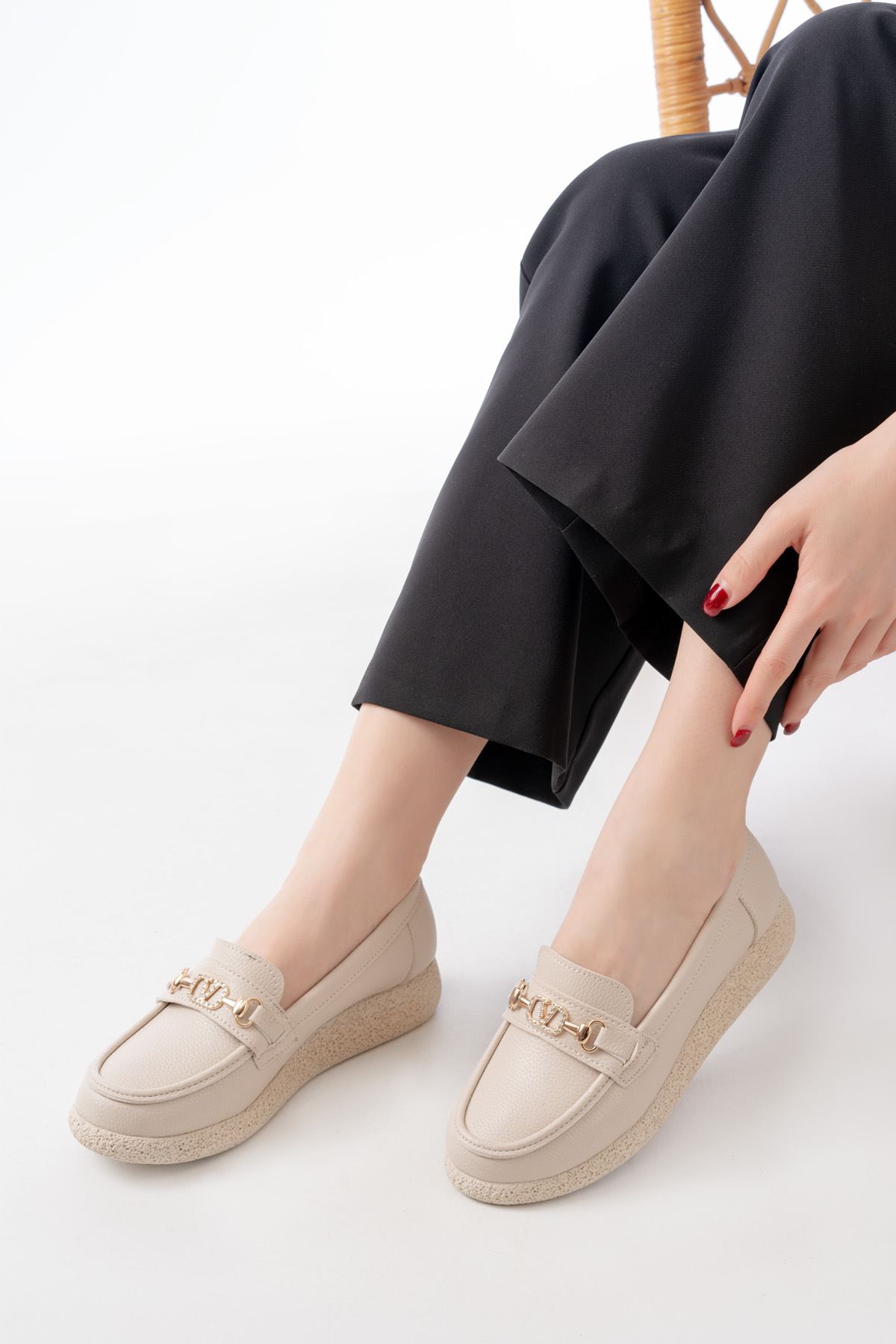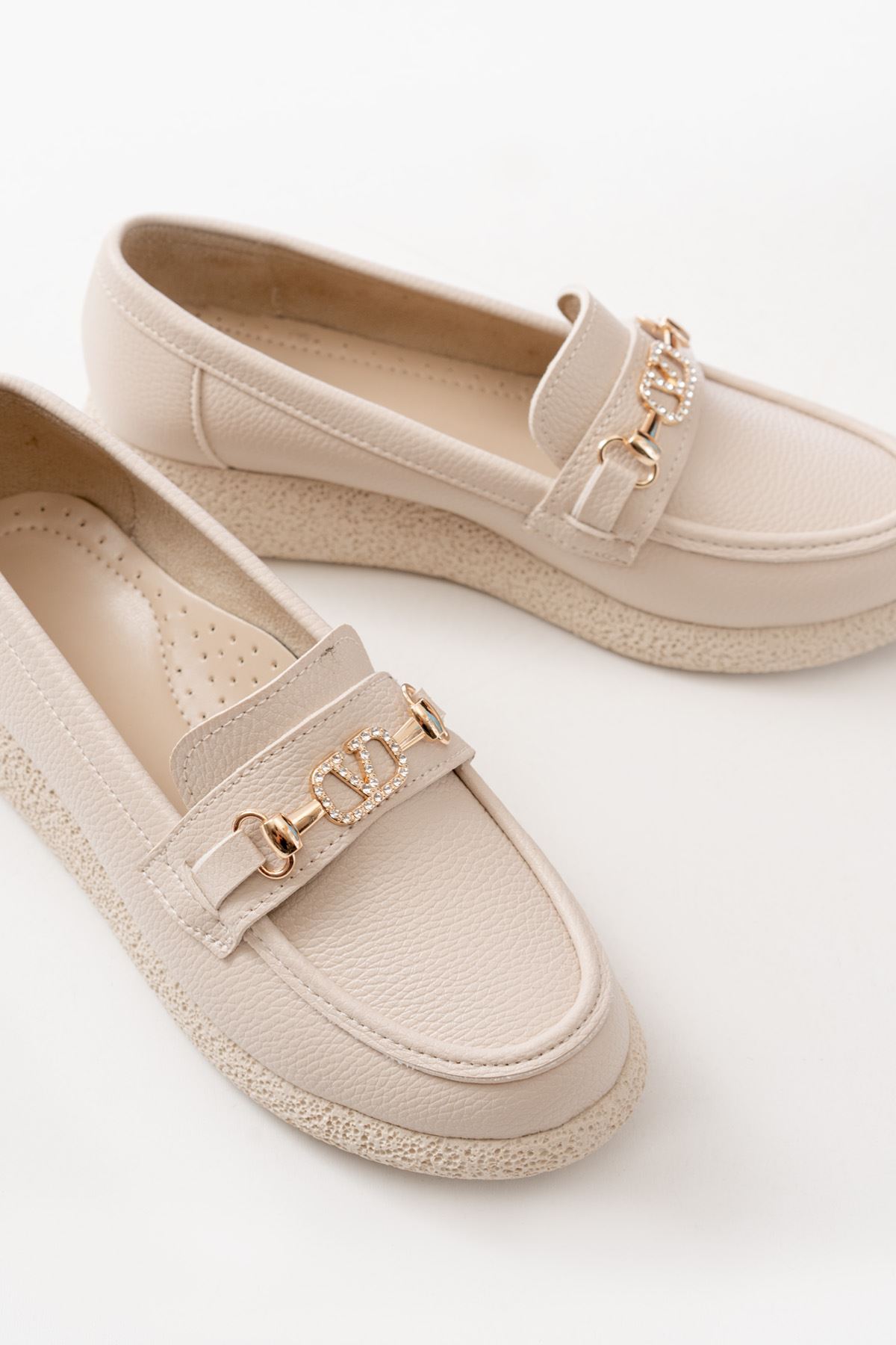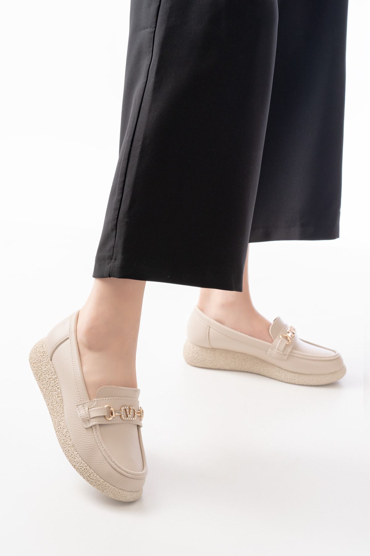 İNF-150-01 Bej Taş Aksesuarlı Günlük Kadın Ayakkabı