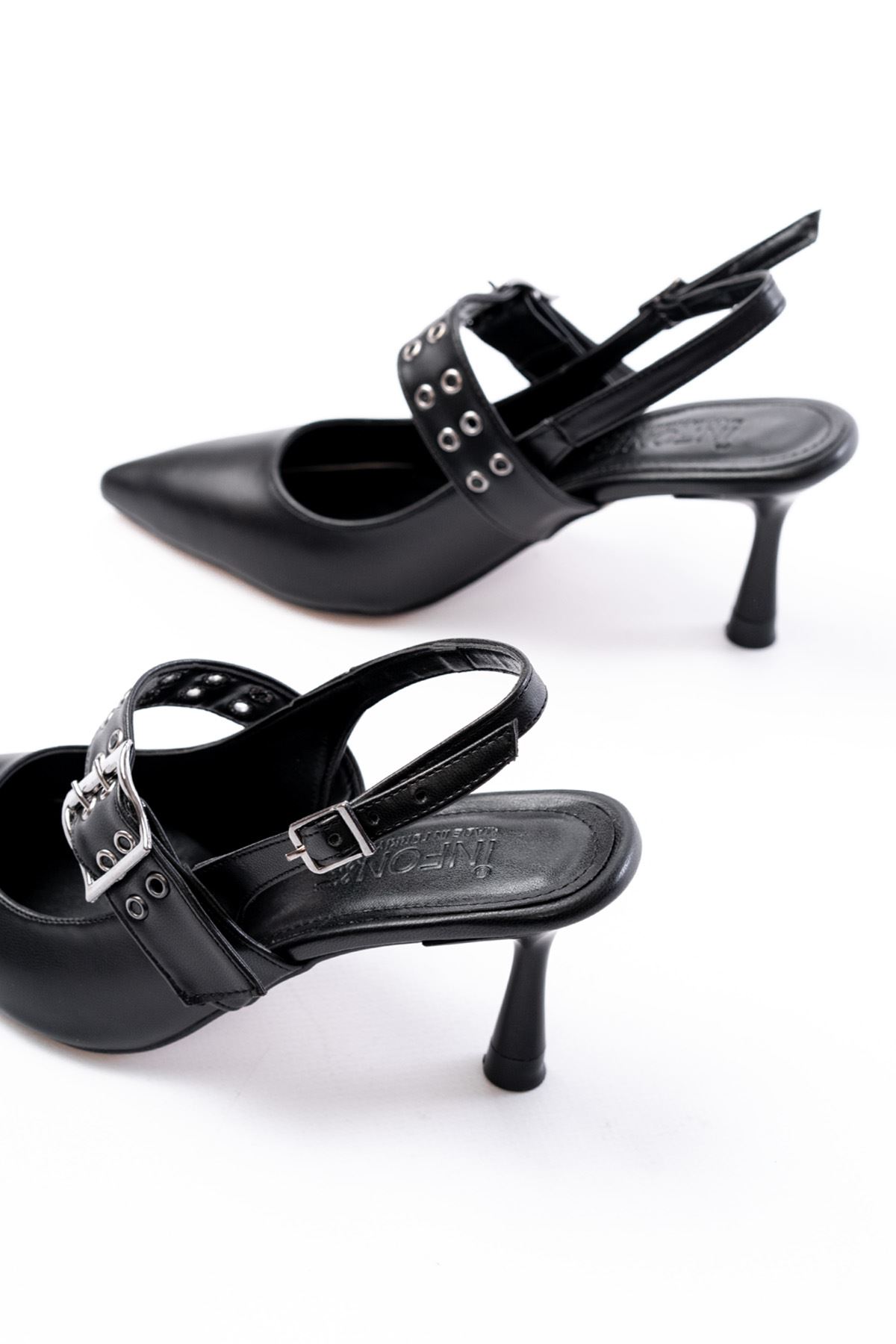 “İNF-260 Siyah Günlük Arkası Açık Baret Tokalı Topuklu Bayan Ayakkabı” için yorum yapan ilk kişi siz olun