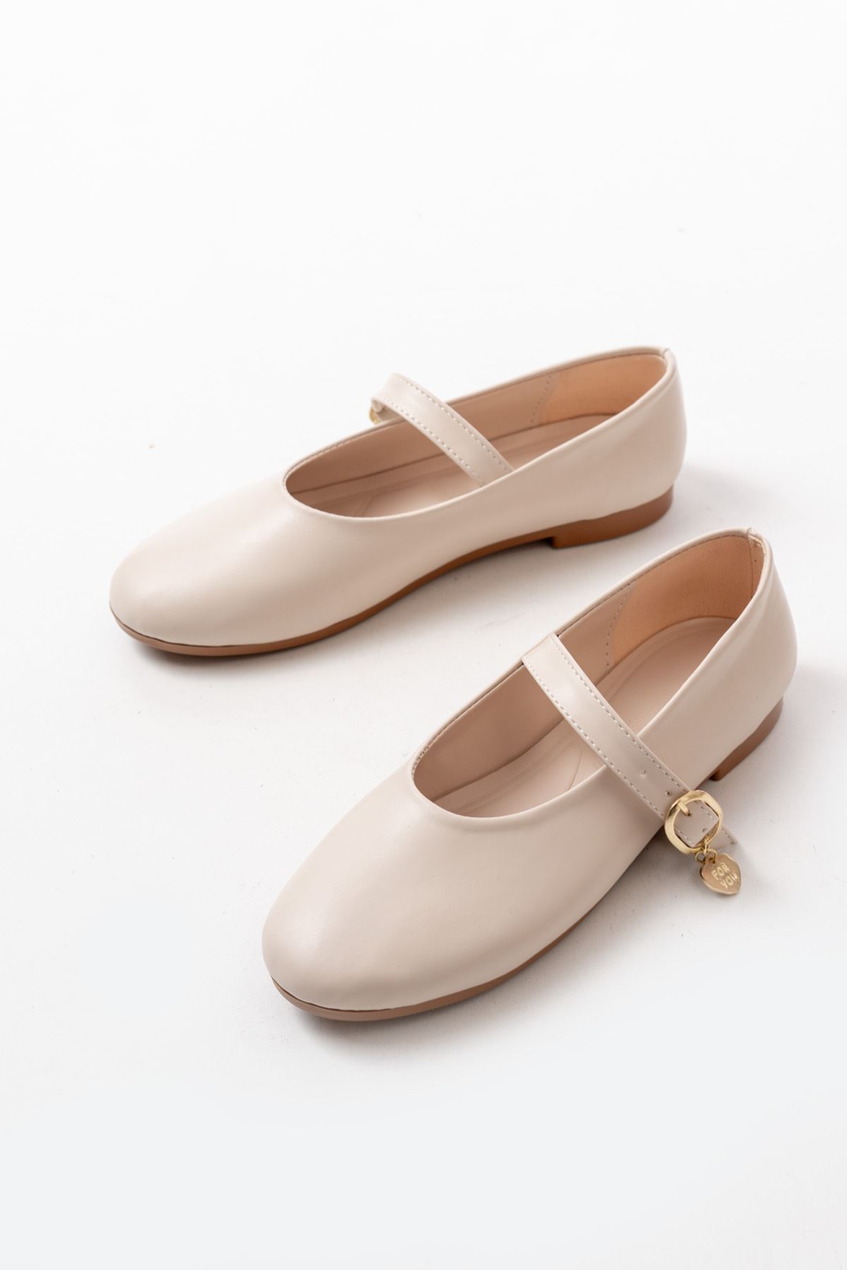 İNF-324 Bej Baretli Tokalı Günlük Kadın Babet