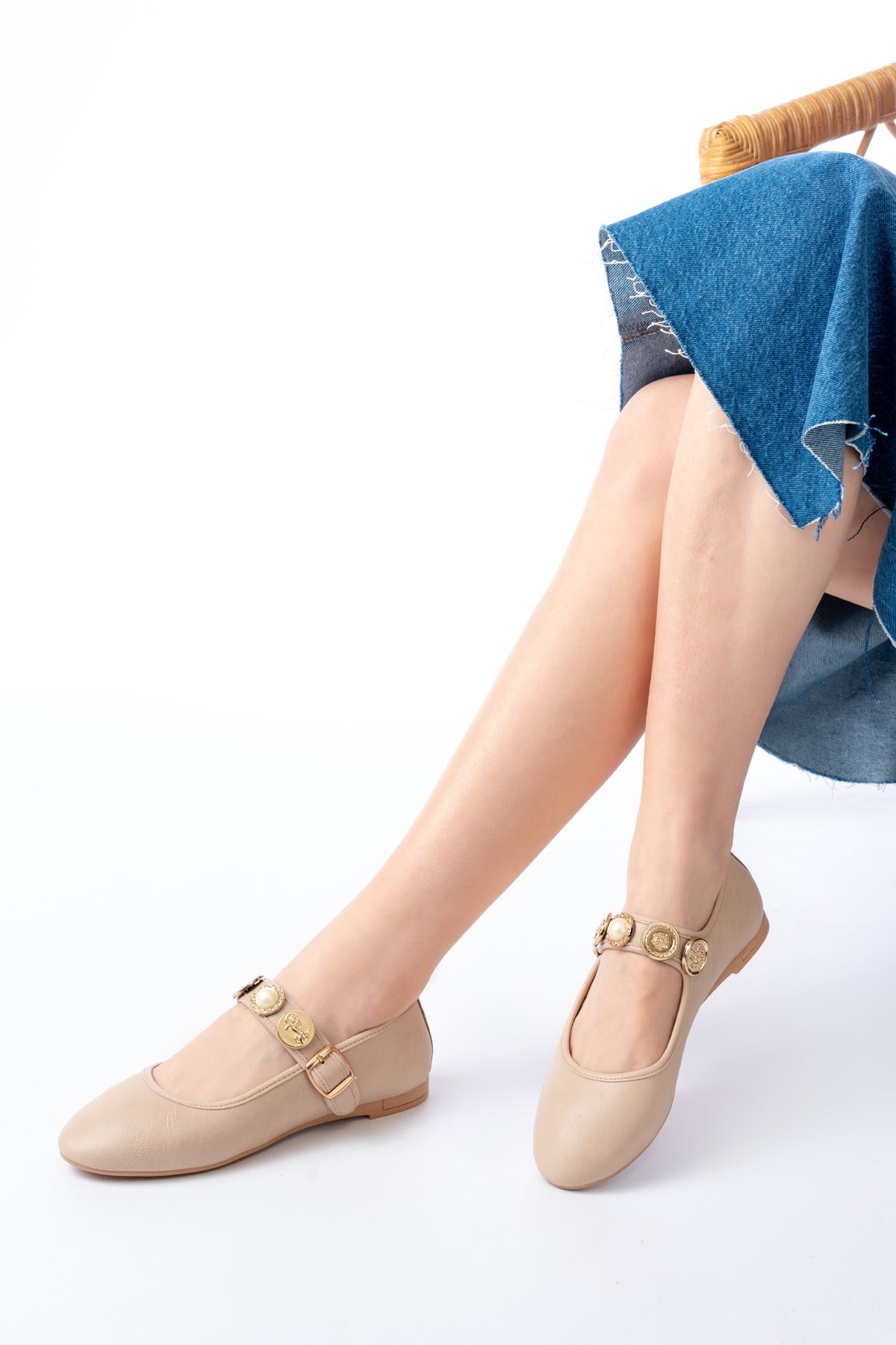 İNF-6363 Nut Baret Tokalı Günlük Bayan Ayakkabı