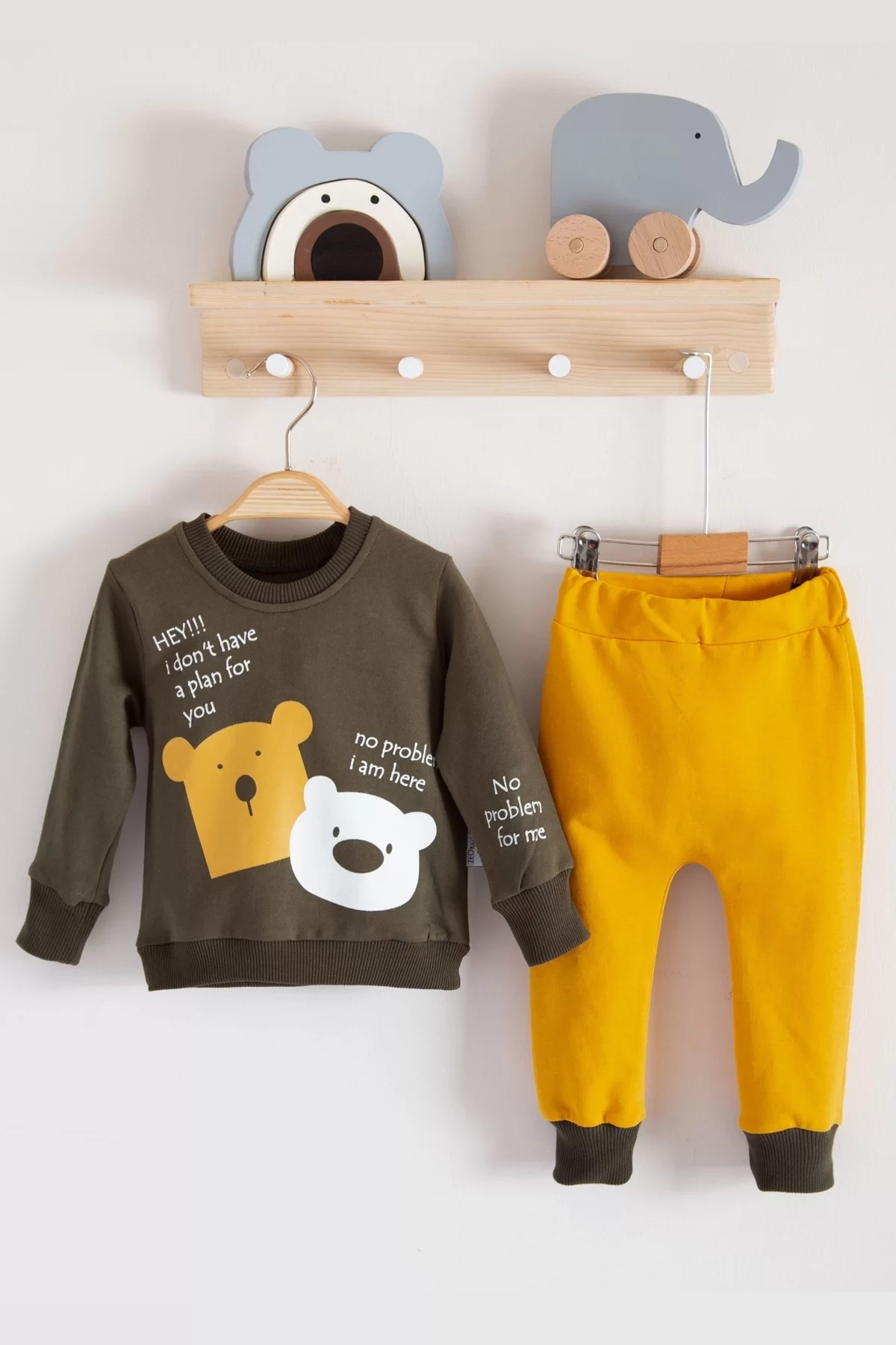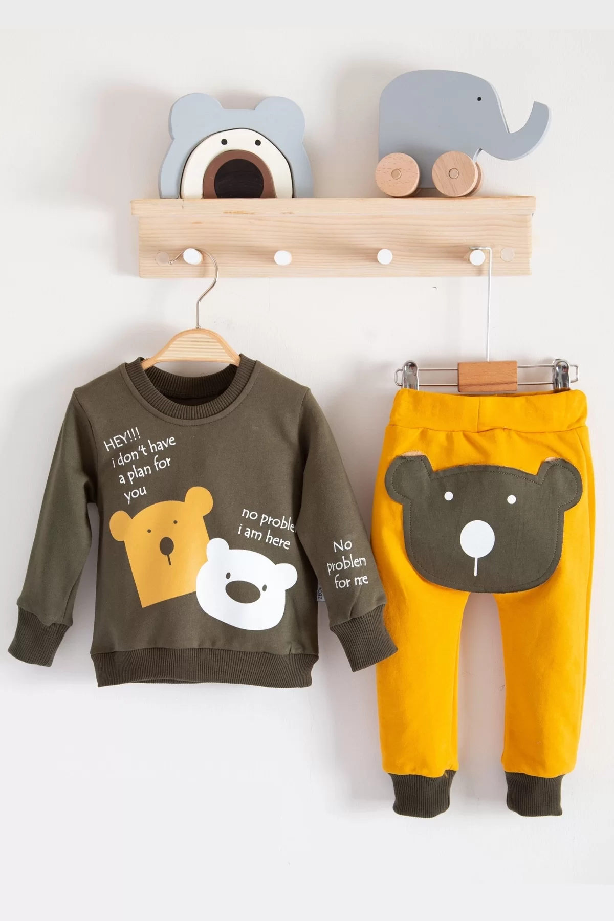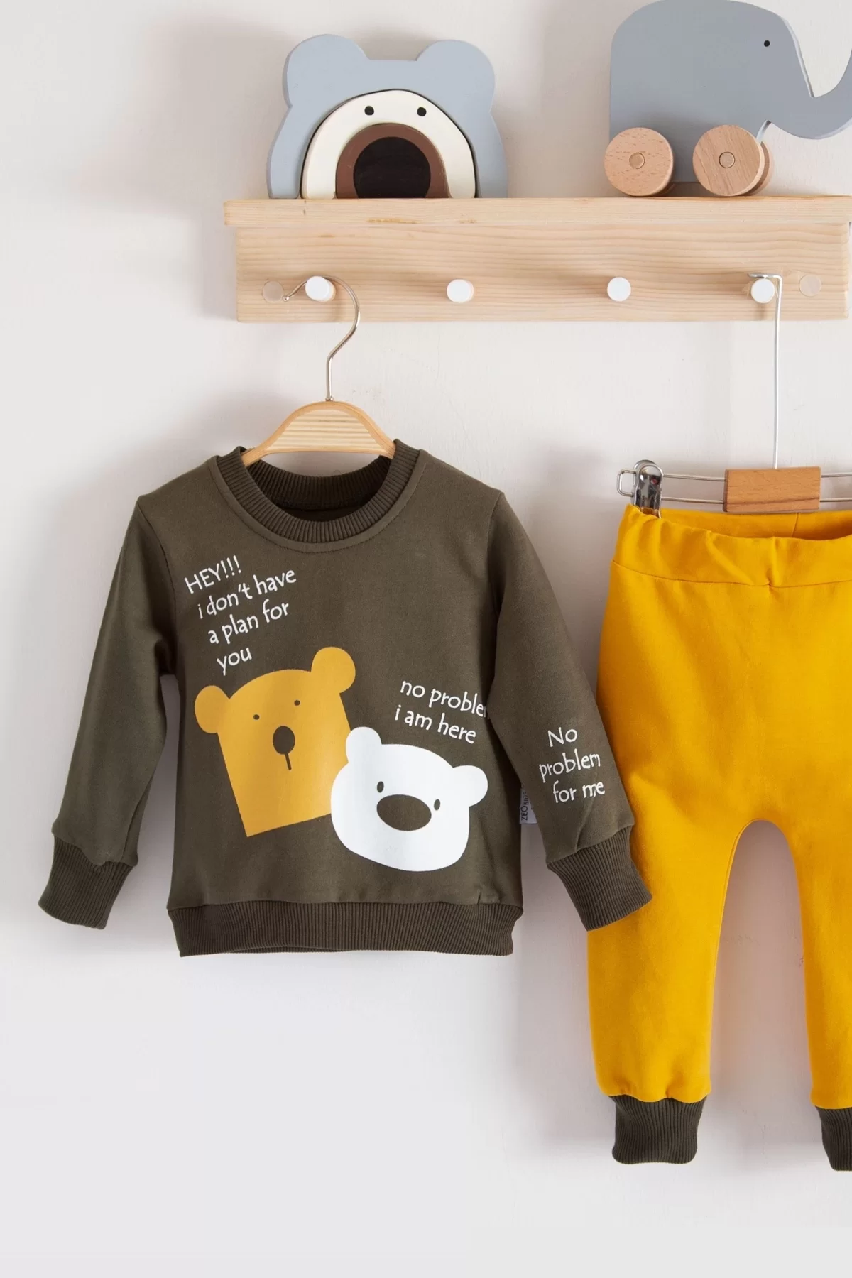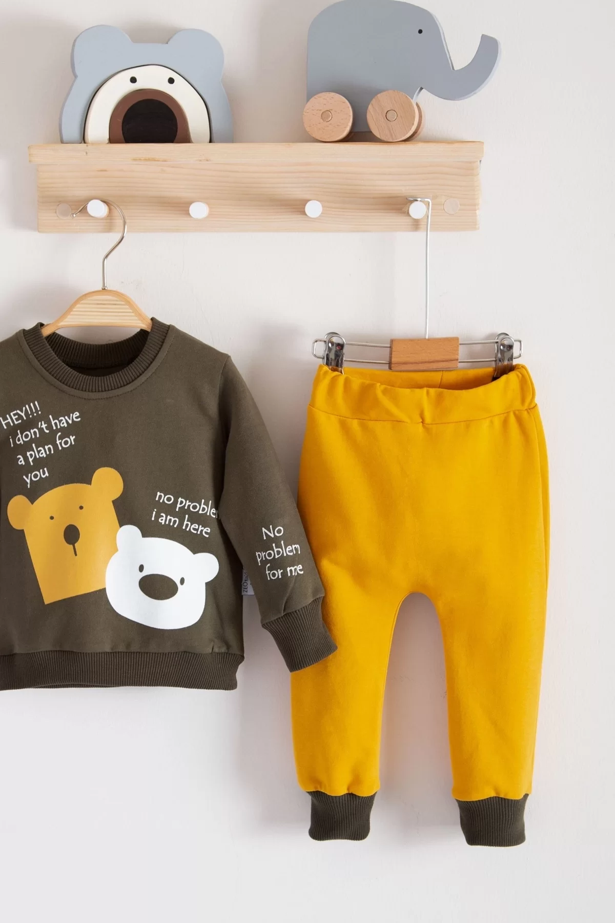No Problem Yazılı Bear Desenli 2’li Erkek Bebek Takımı