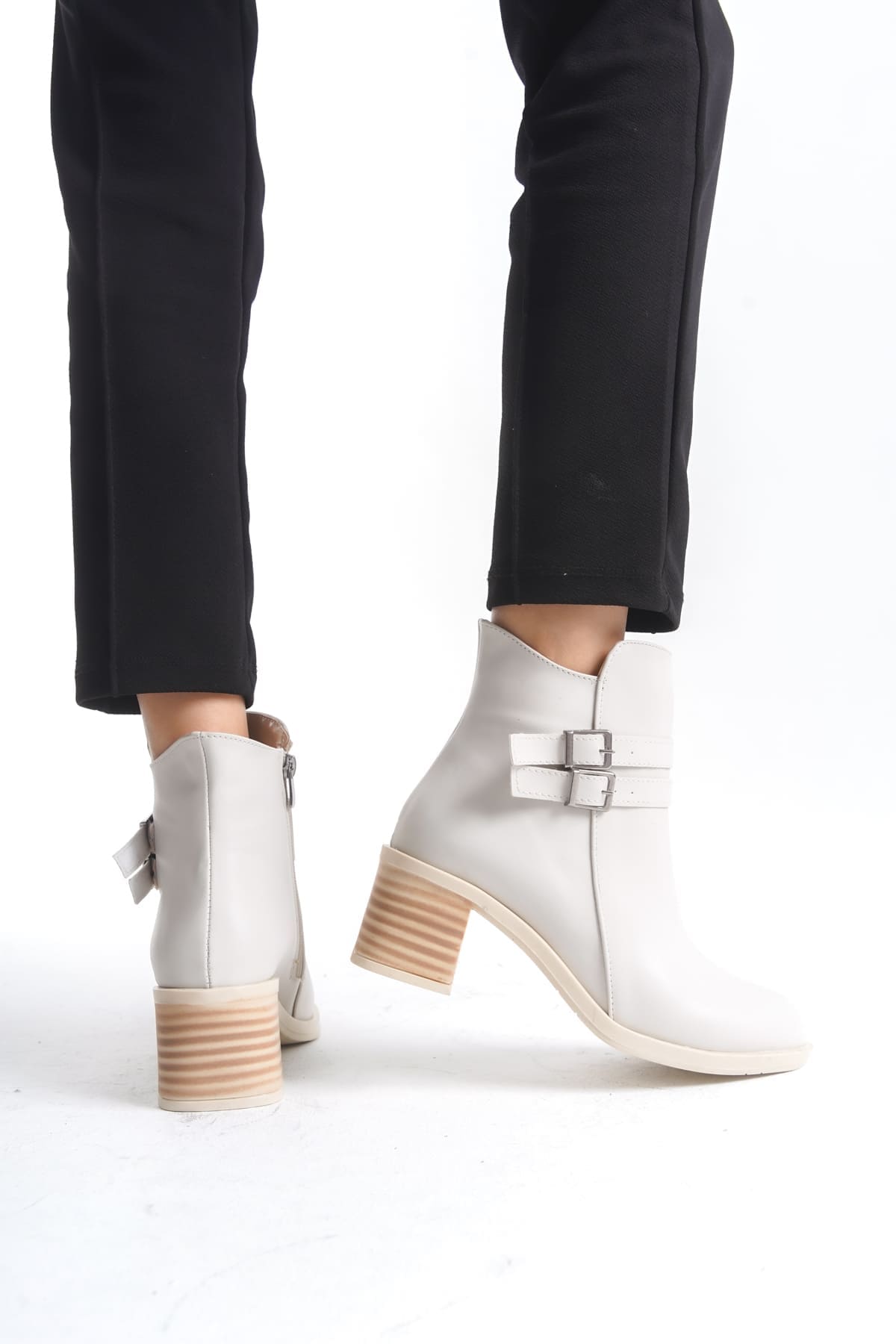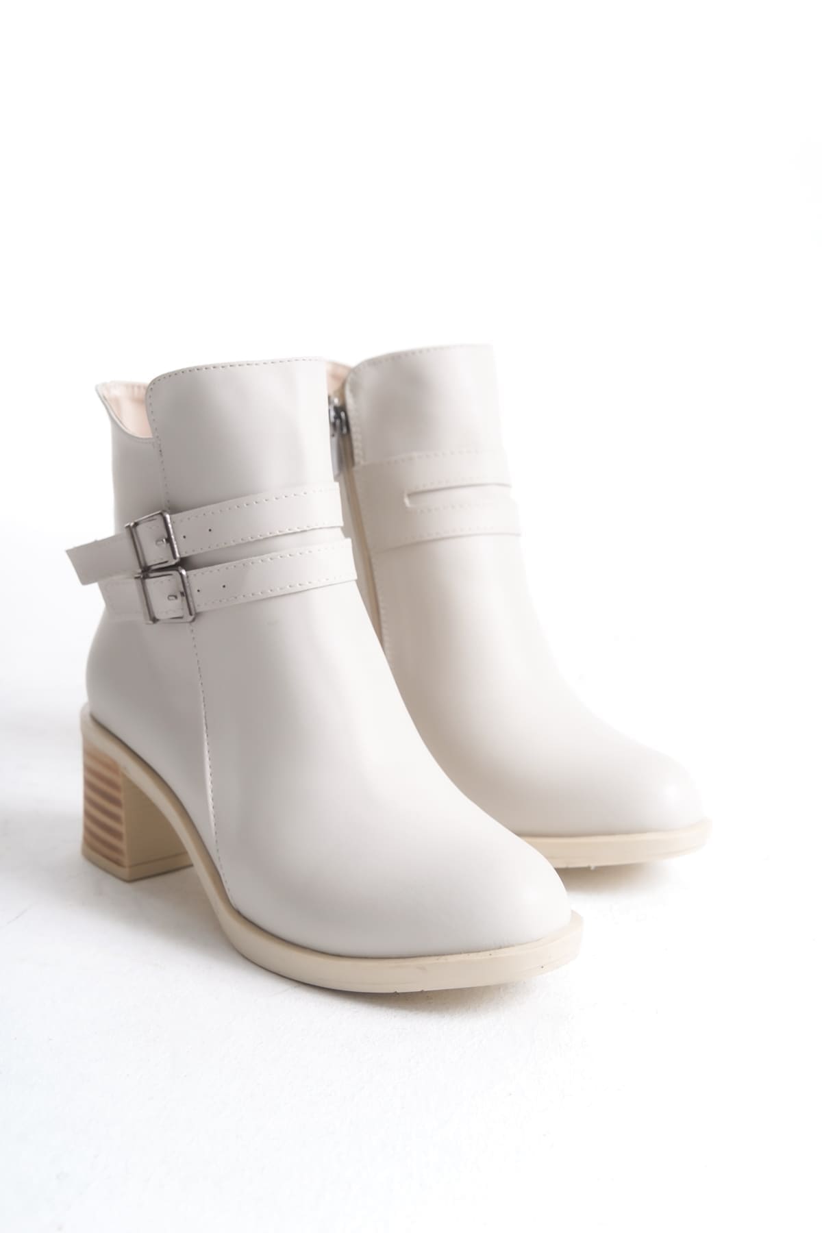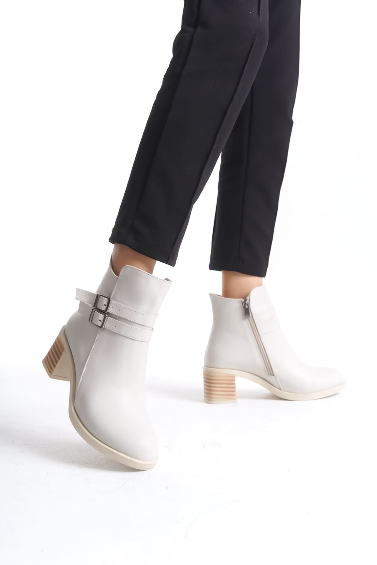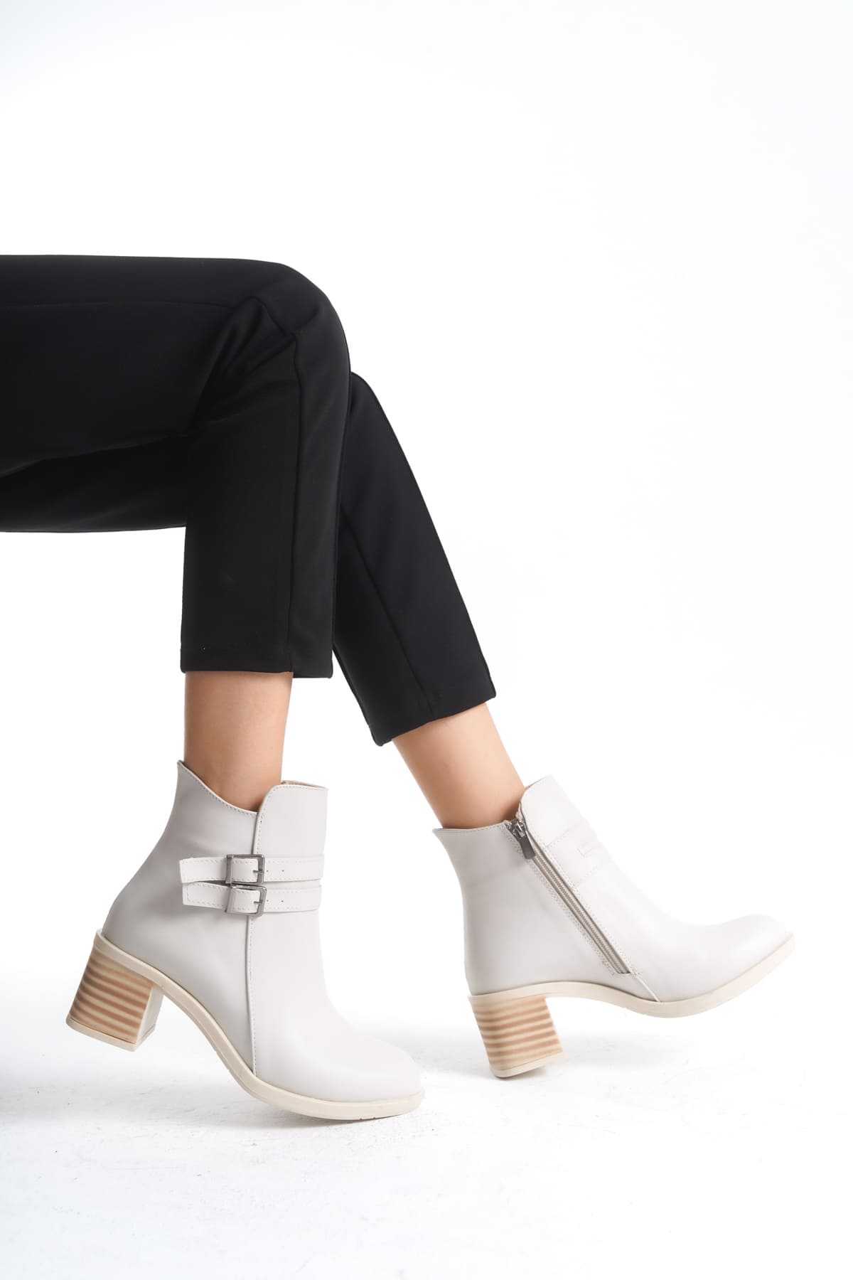 NOEMI Tokalı Fermuarlı Ortopedik Taban Topuklu Kadın Bot CKT – Krem