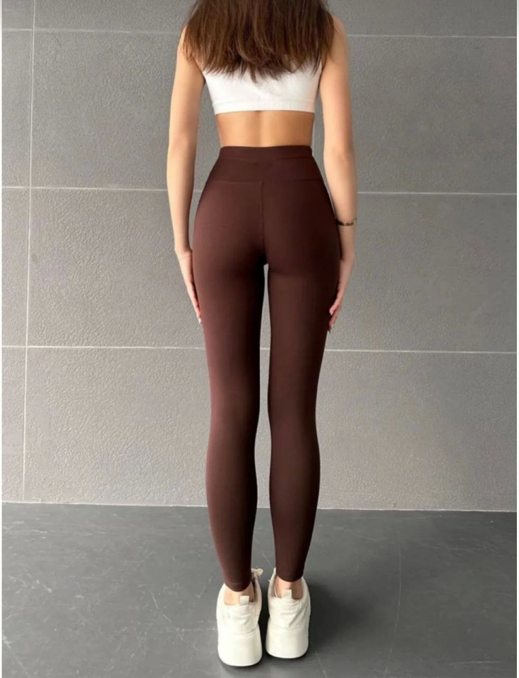 Nonofit Yüksek Bel Düz Özel Tasarım Sporcu Tayt – Kahve