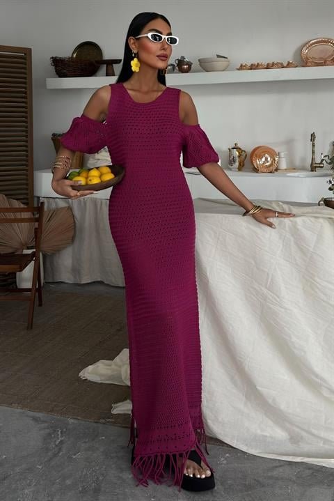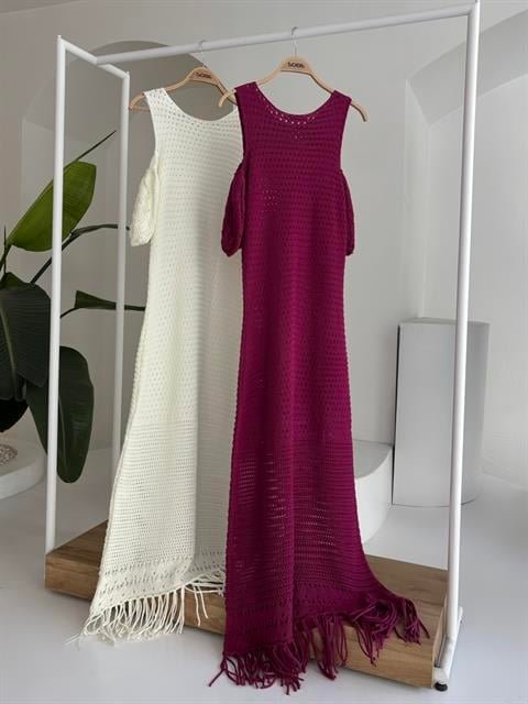Omuz Detaylı Etek Ücü Püsküllü Triko Elbise 2862