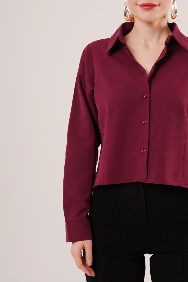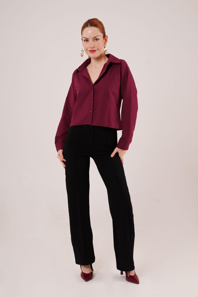 Ön Dikiş Detaylı Bordo Gömlek