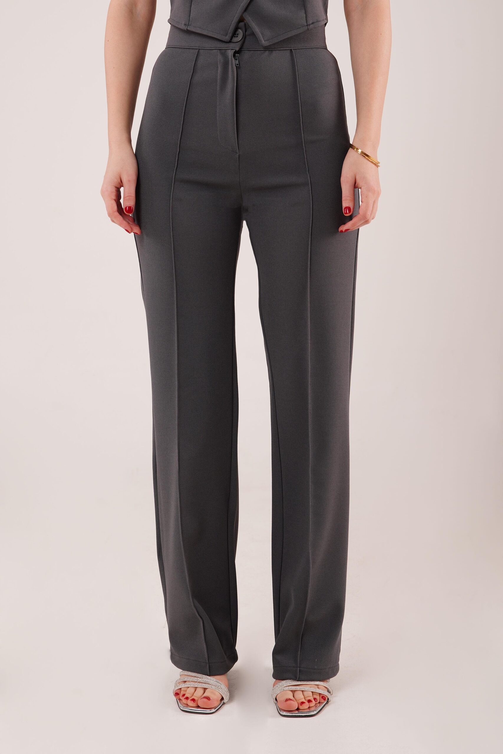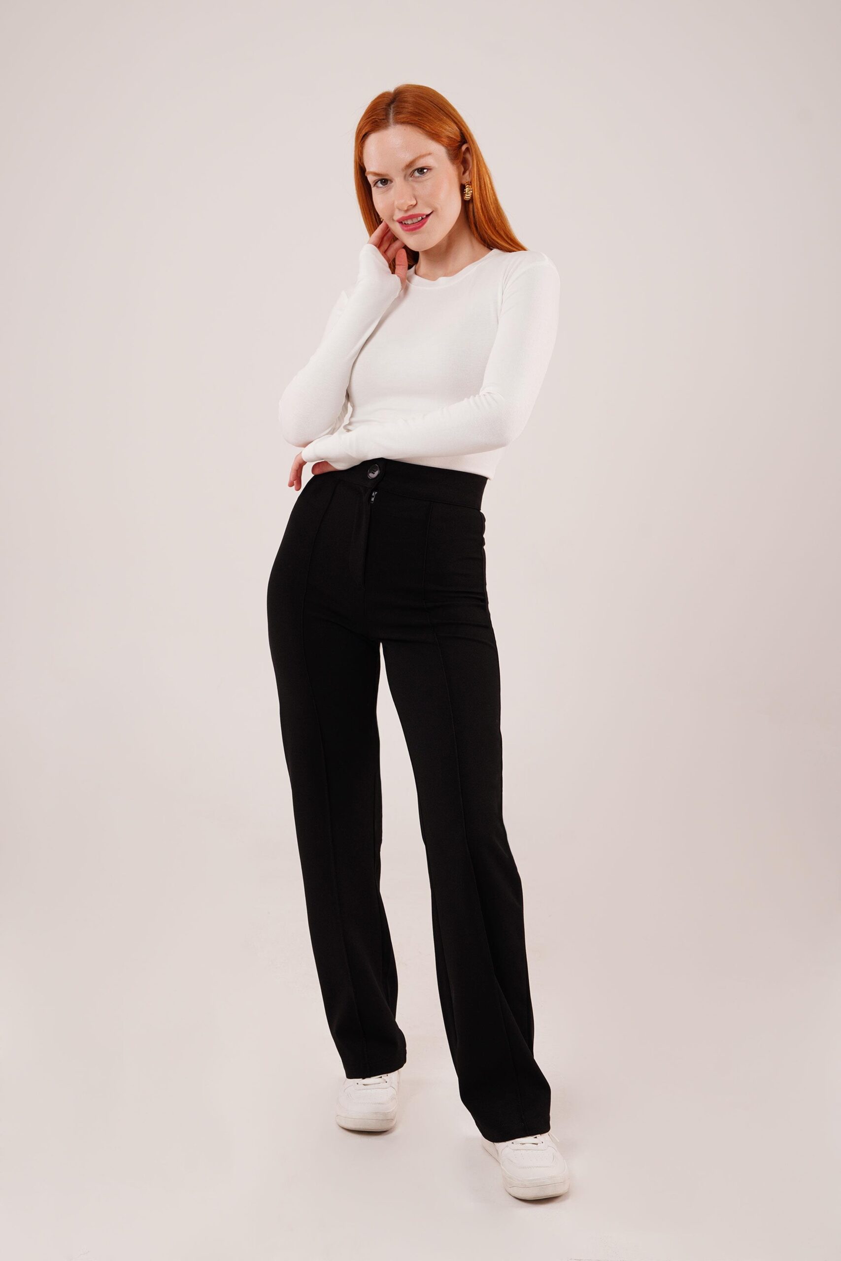 Ön Dikiş Detaylı Tek Düğme Siyah Pantolon