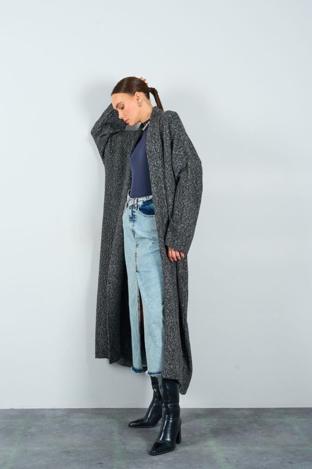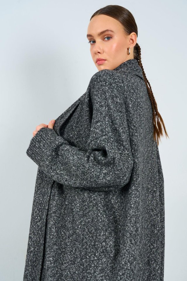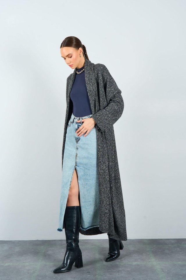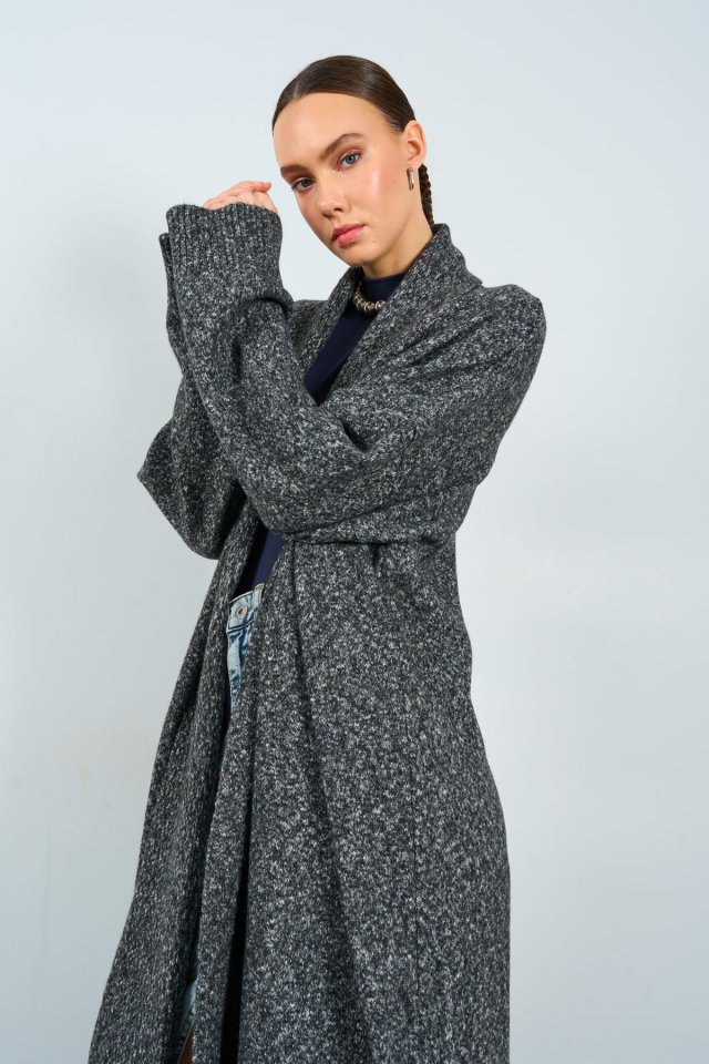 Önü Açık Şal Yaka Hırka – Siyah