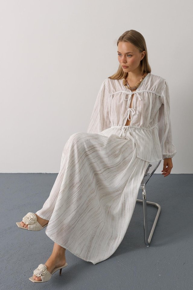 Modelin Ölçüleri: Boy:165, Kg:55, Göğüs:90, Bel:72, Kalça: 100