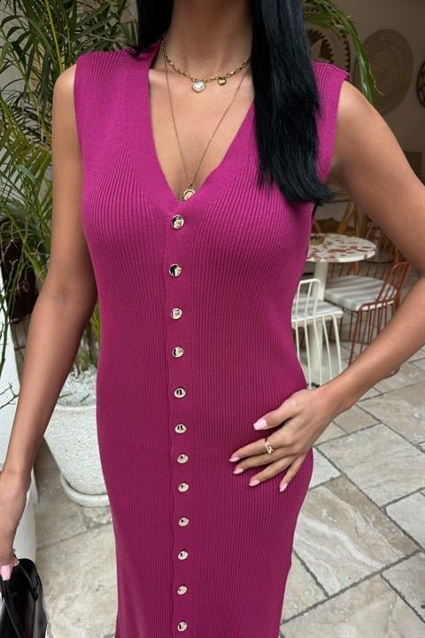 Önü Düğmeli Fitilli Kolsuz Elbise 2832