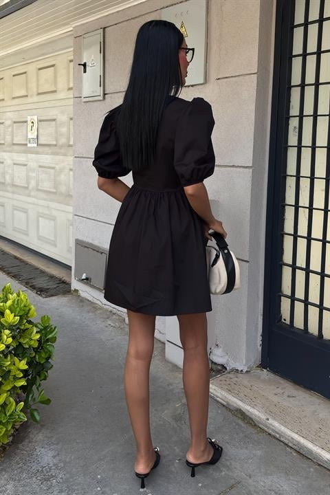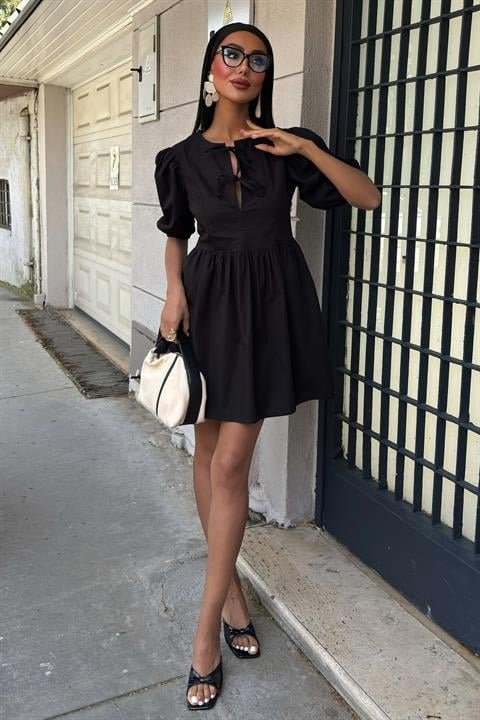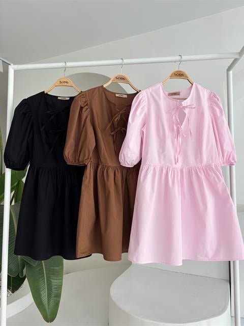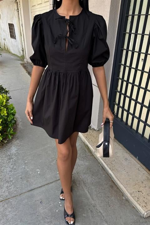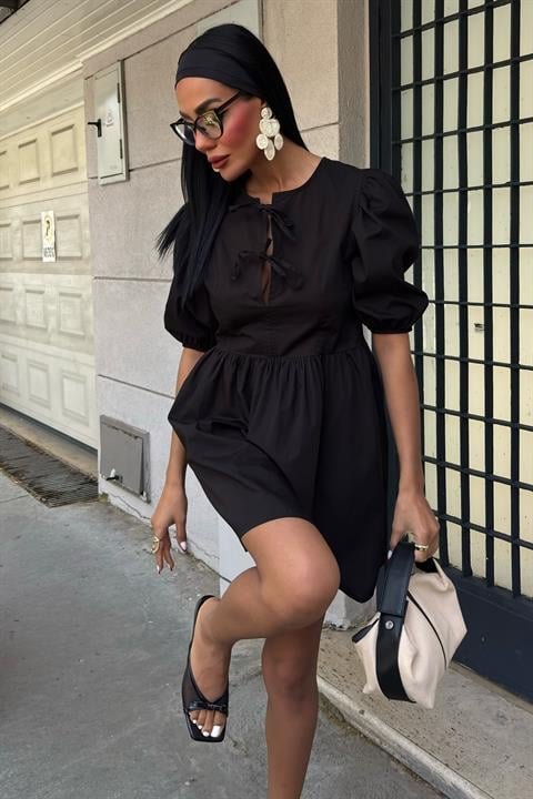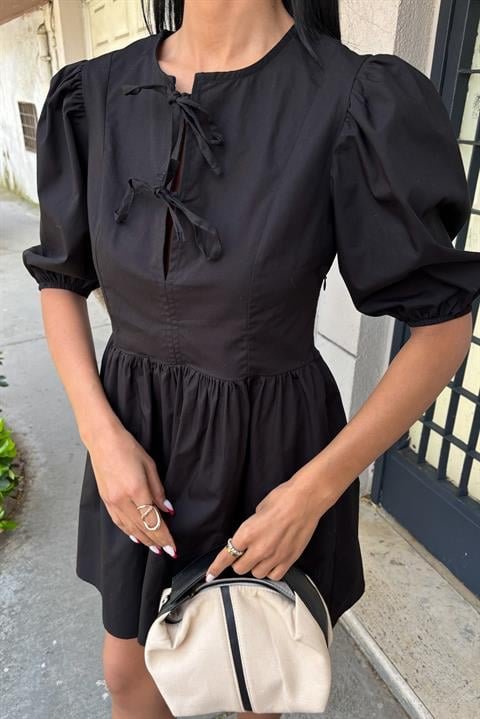 Önü Fiyonk Bağlamalı Ve Balon Kollu Elbise 2893