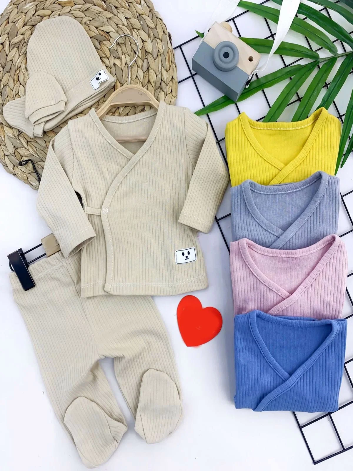 Organik Uzun Kollu 4 Parça Kız Erkek Bebek Hastane Çıkışı (1 Takım) Krem