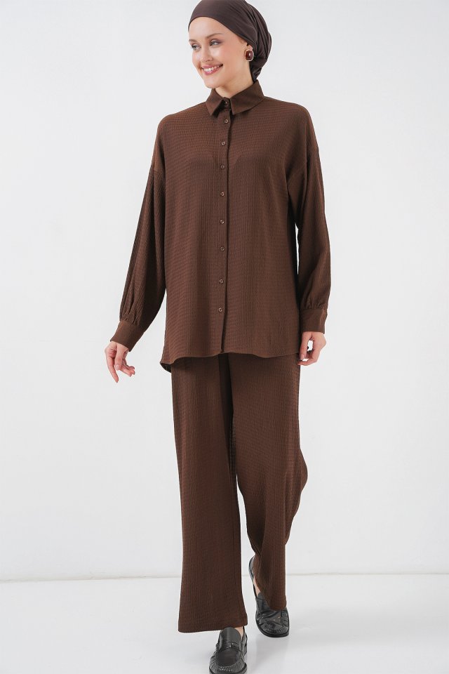 Örme Tesettür Alt Üst Takım 6711 – Kahverengi