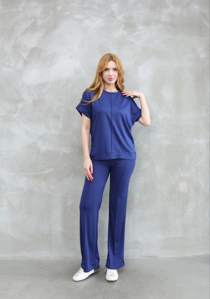 Osy Modal Yumuşak Dokulu Kumaş Bisiklet Yaka Kısa Kollu Takım – Lacivert