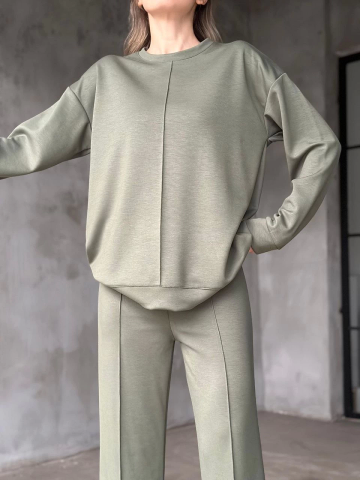 Osy Modal Yumuşak Dokulu Kumaş Bisiklet Yaka Takım- Haki