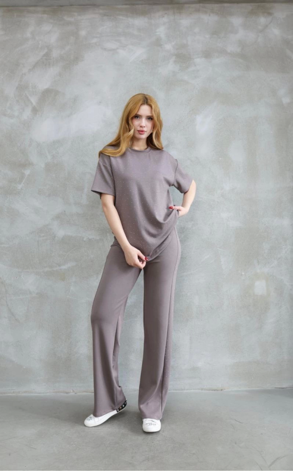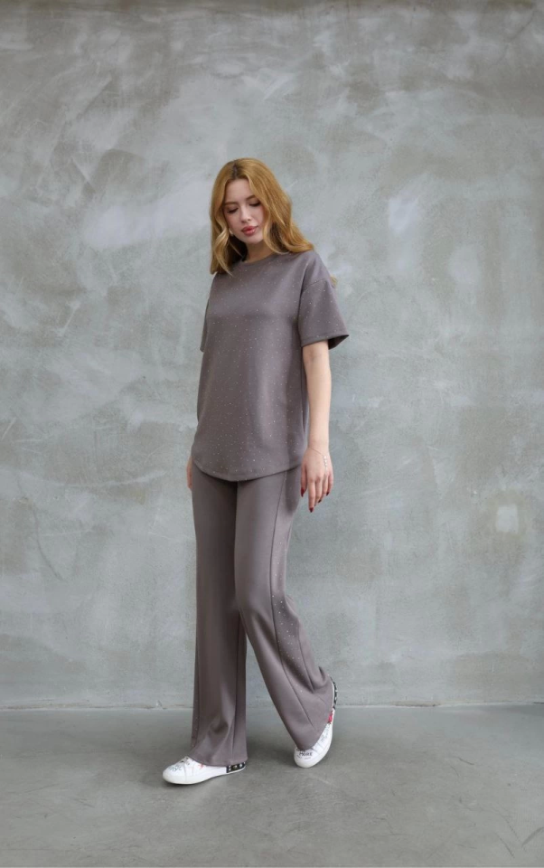 Osy Modal Yumuşak Dokulu Kumaş Bisiklet Yaka Taş Detaylı Kısa Kollu Takım – Vizyon