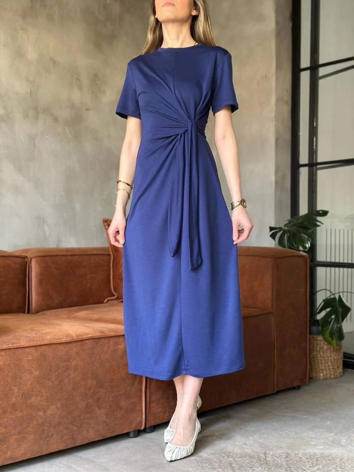 Osy Modal Yumuşak Dokulu Kumaş Yandan Bağlamalı Elbise – Lacivert
