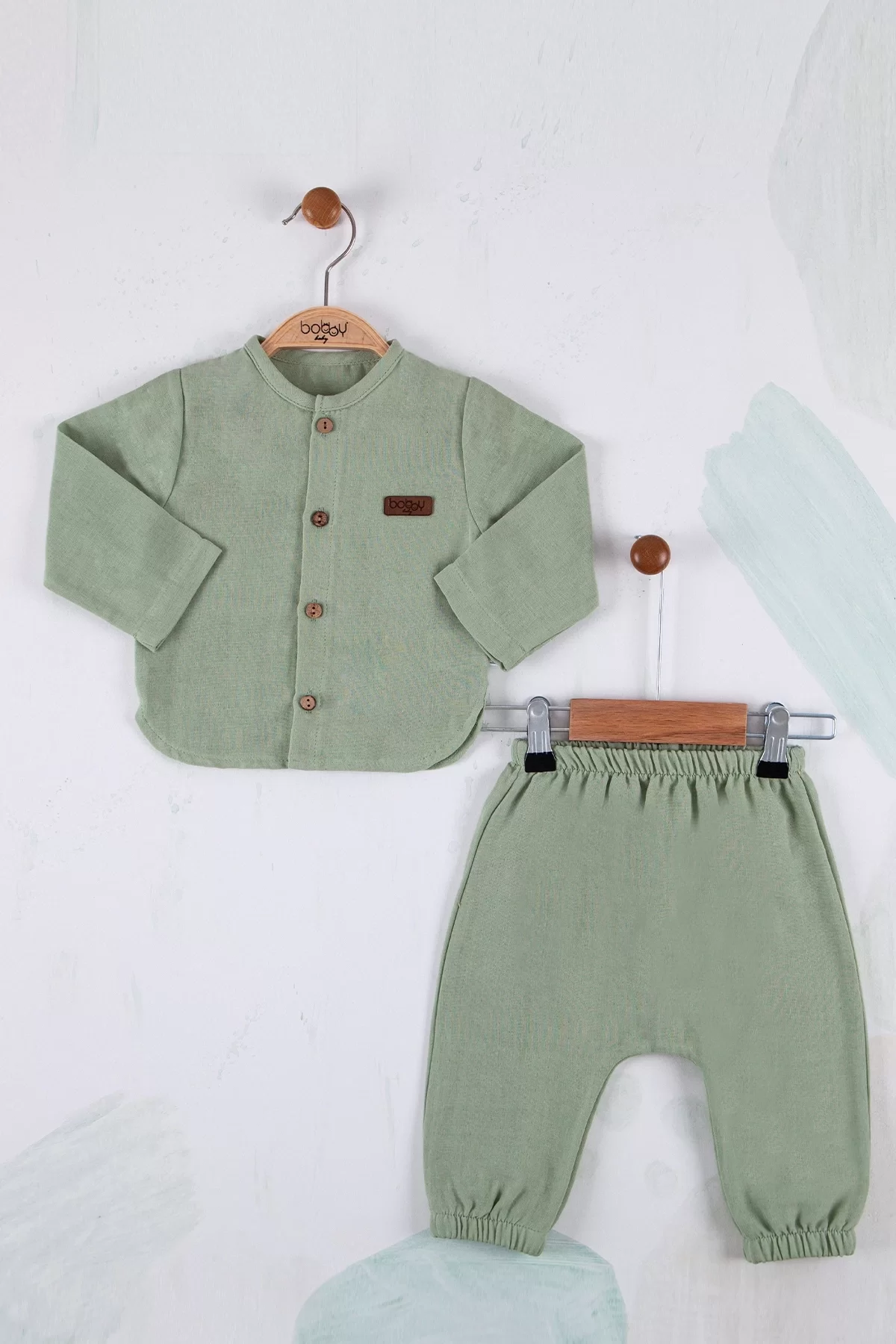 Oval Kesim 5 Düğmeli Müslin Kumaş 2’li Erkek Bebek Takımı