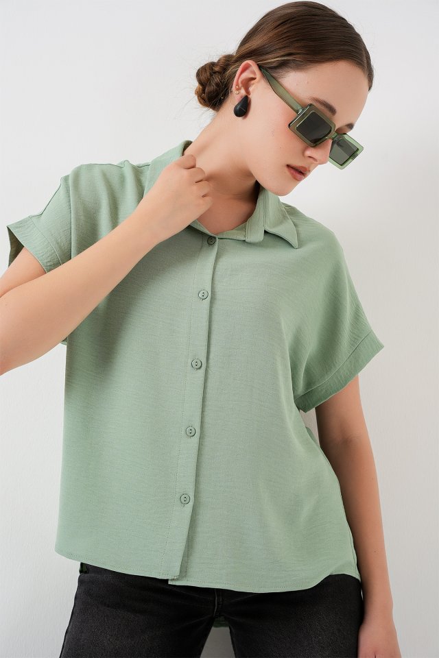 Oversize Kısa Kol Gömlek 20322 – Pembe