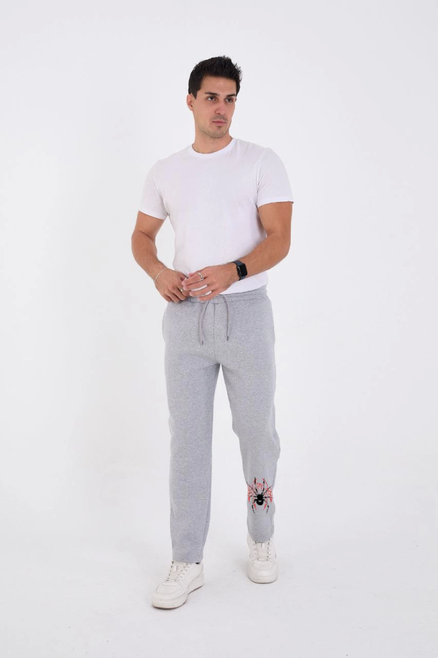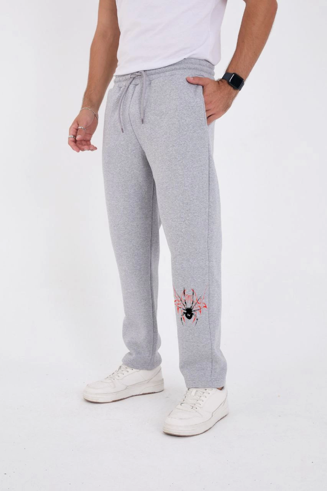 Oversize Üç İplik Baskılı Eşofman Pantolon – Gri
