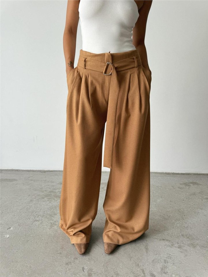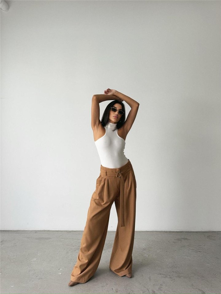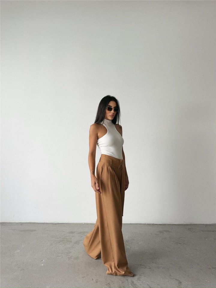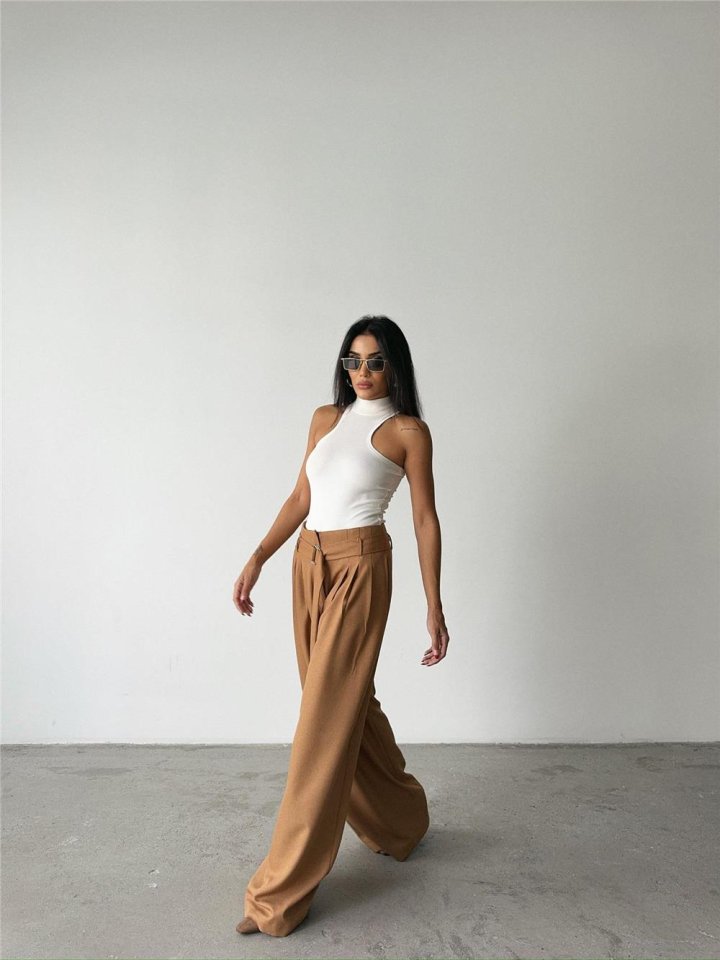 PALAZZO PANTOLON KUMAŞ KEMER DETAYLI – Bej