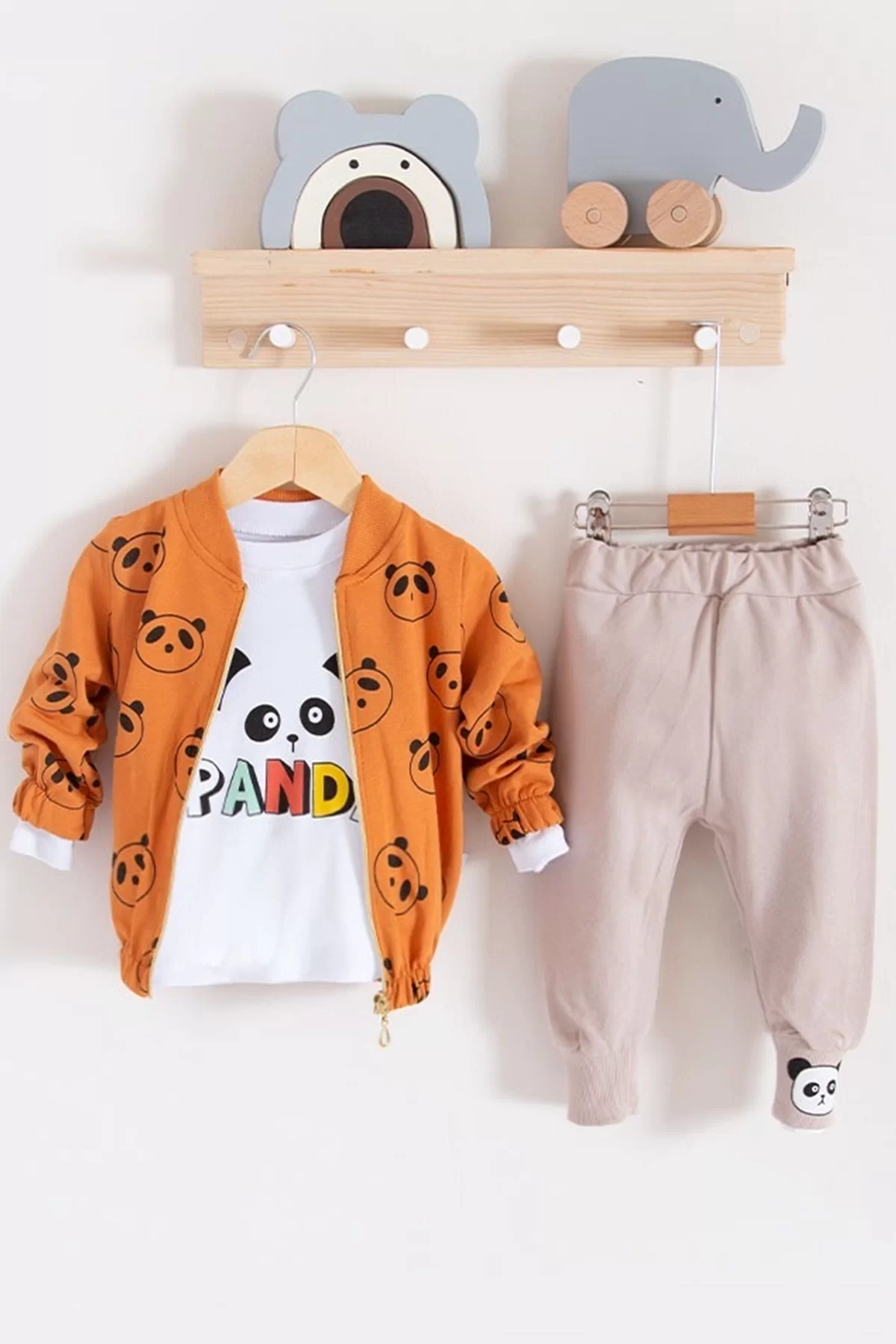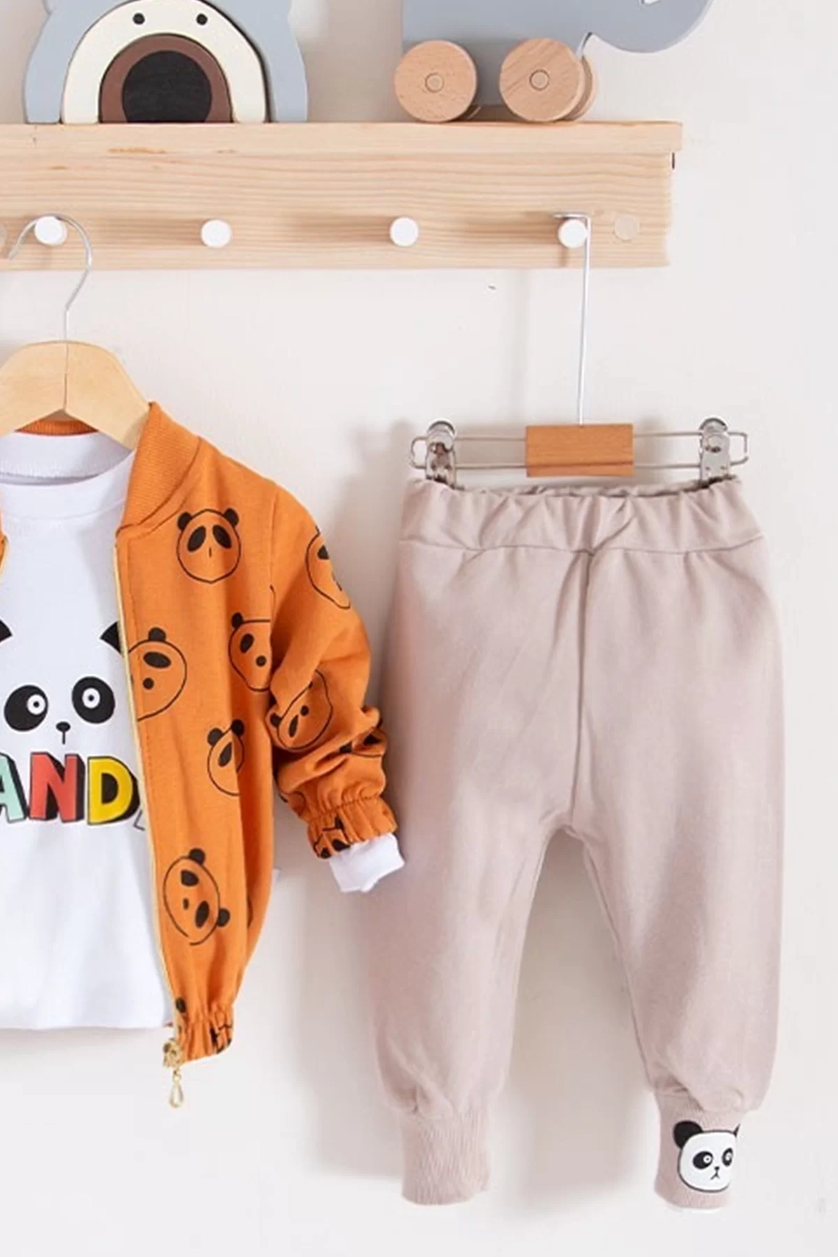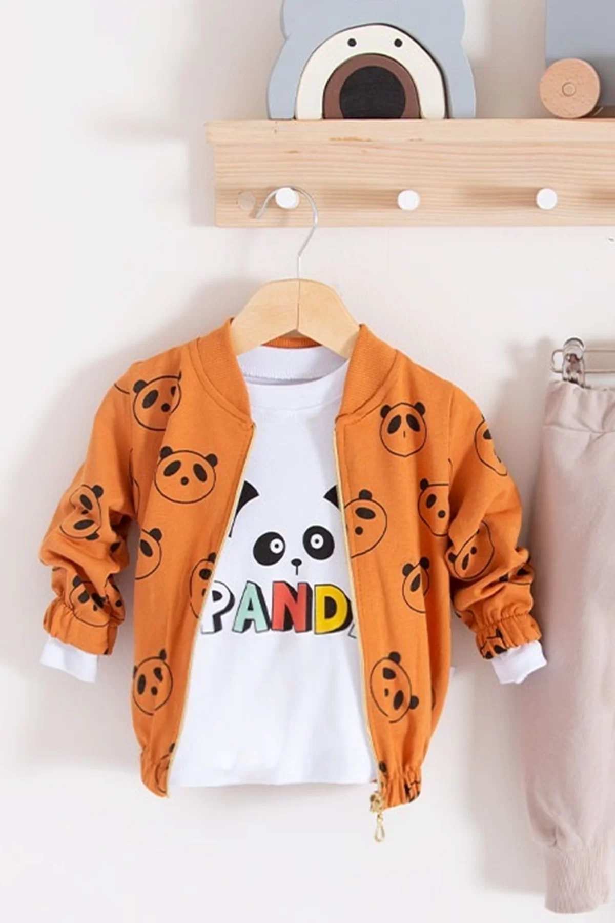 Panda Desenli Hırkalı 3’lü Erkek Bebek Takım.