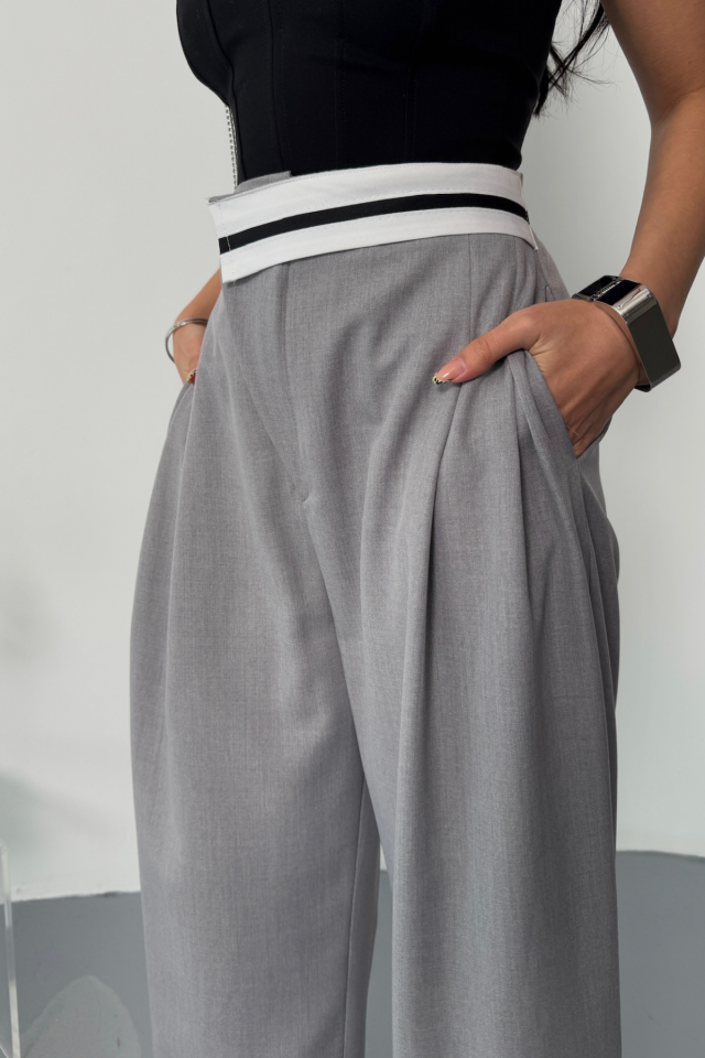 PANTOLON BEL ŞERİT DETAYLI – Gri