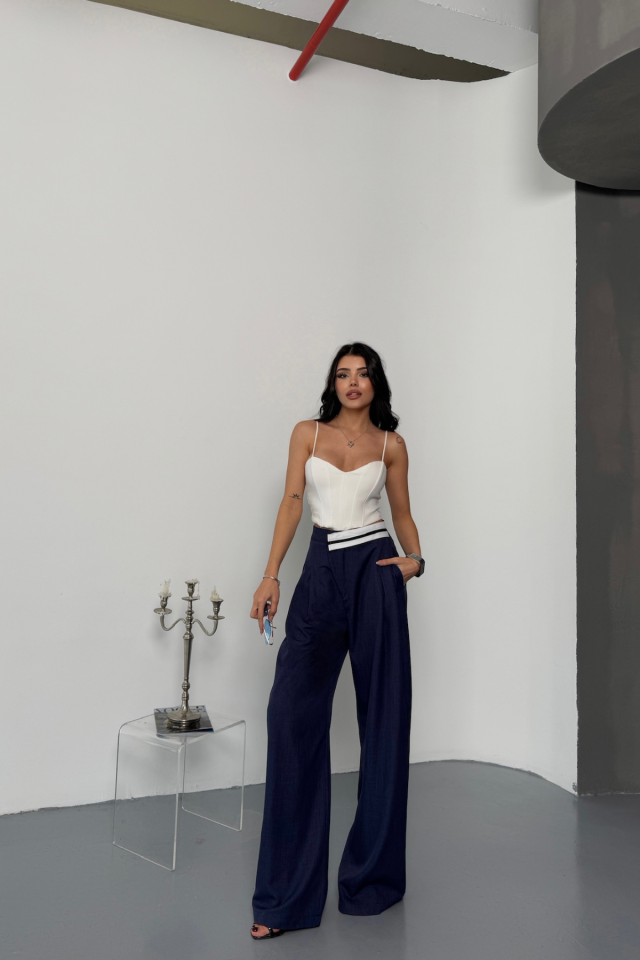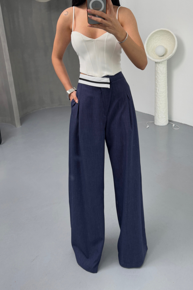 PANTOLON BEL ŞERİT DETAYLI – Lacivert