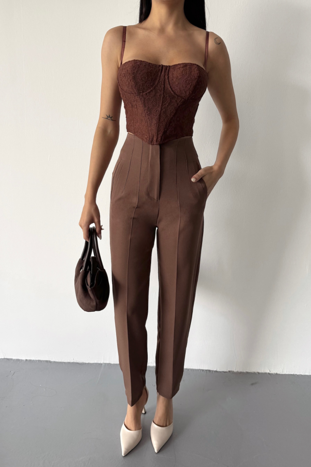 PANTOLON PENSLİ ATLAS KUMAŞ – Kahverengi
