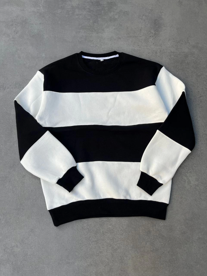 Parçalı Bisiklet Yaka Baskılı SweatShirt – Siyah