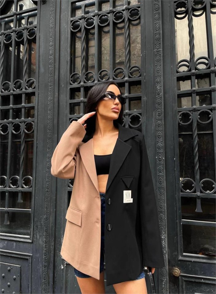 PARÇALI CEKET ETİKET DETAYLI – Kahverengi