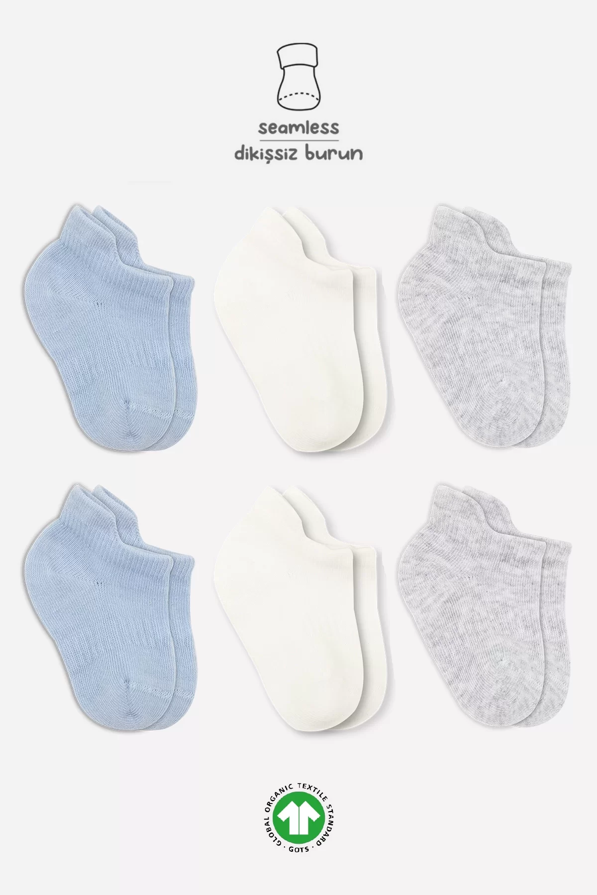 Penye Sneakers Çorap 6’lı Mavi Ekru Gri