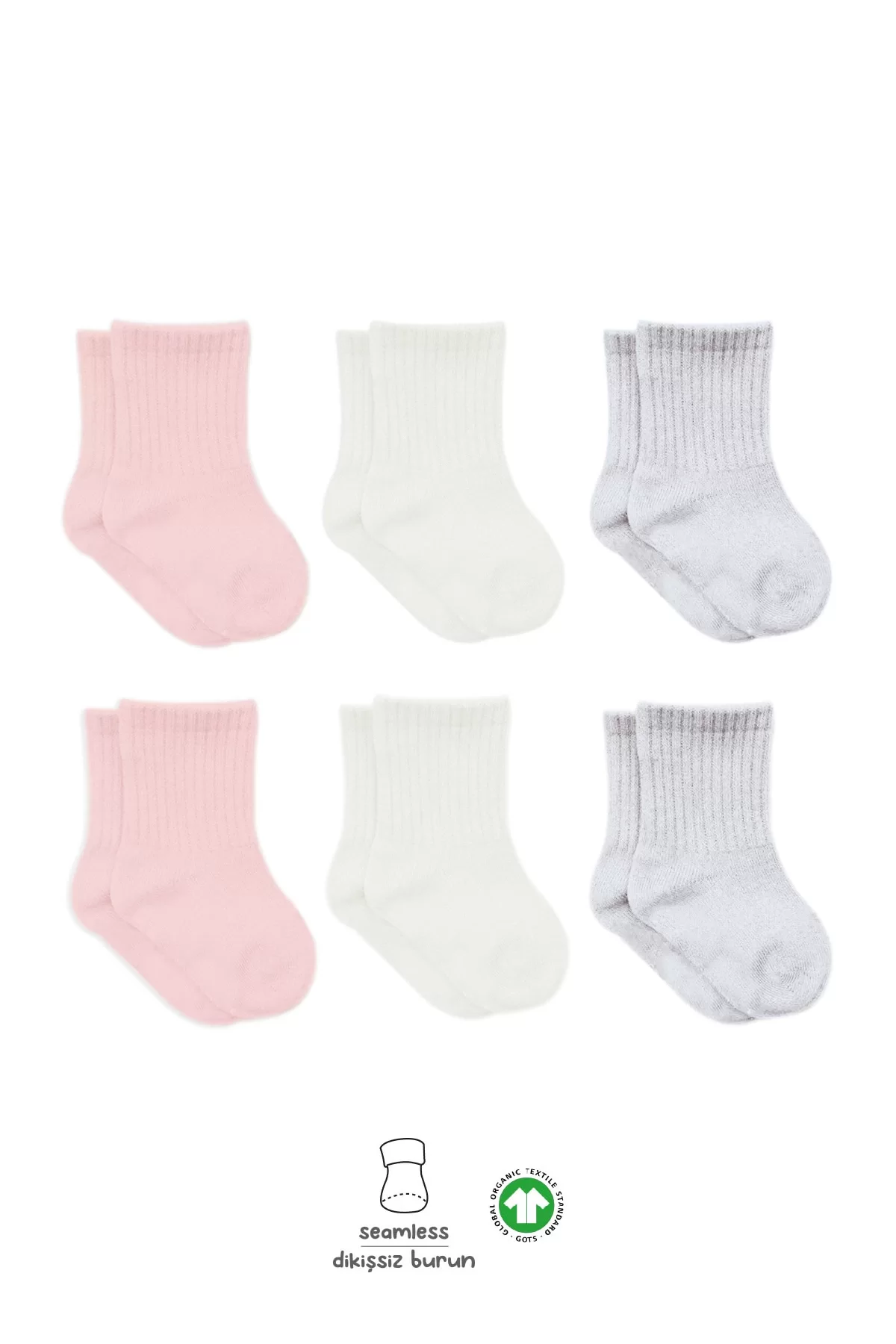 Penye Soket Çorap 6’lı Pembe Ekru Gri