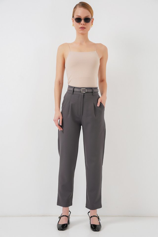 Pileli Kemerli Kumaş Pantolon 6725 – Antrasit