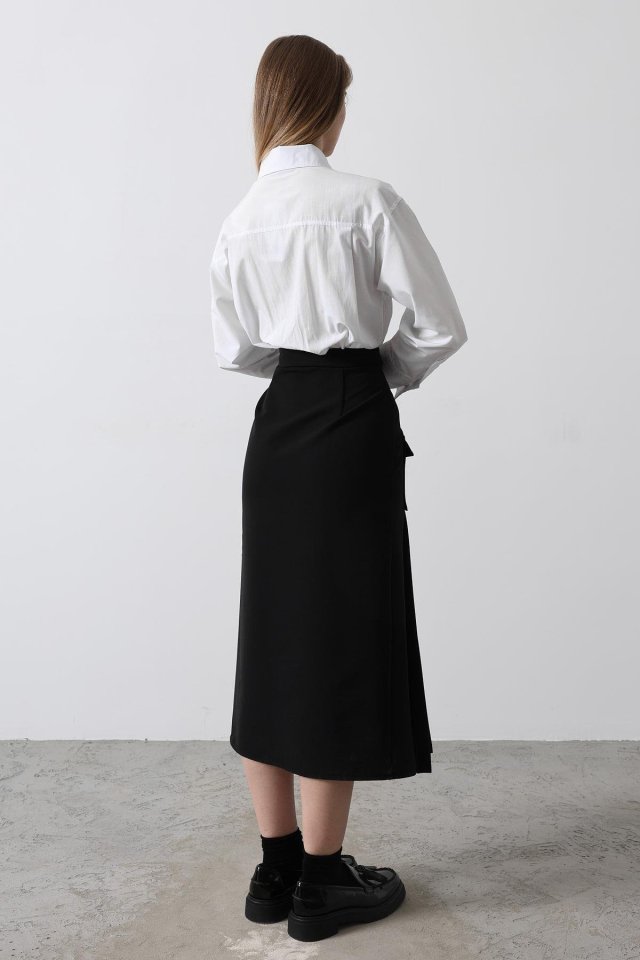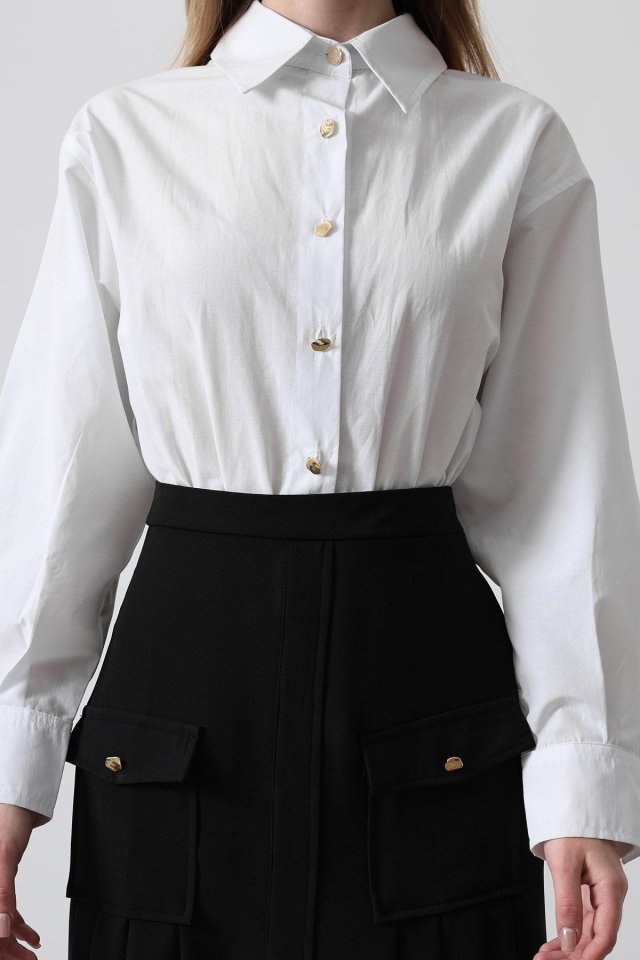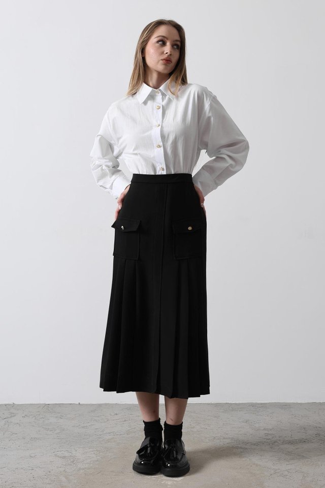 Pileli Kontrast Gömlek Elbise – Beyaz