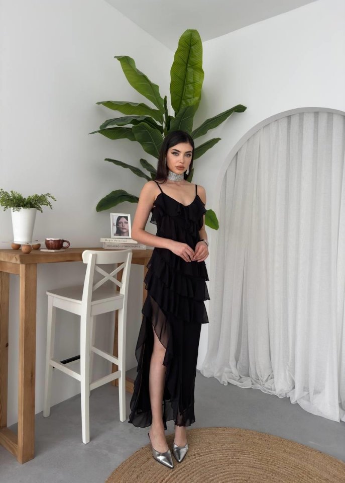 Ples Yırtmaç Detaylı Elbise
