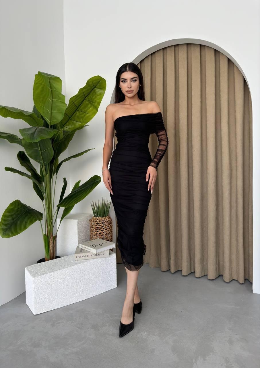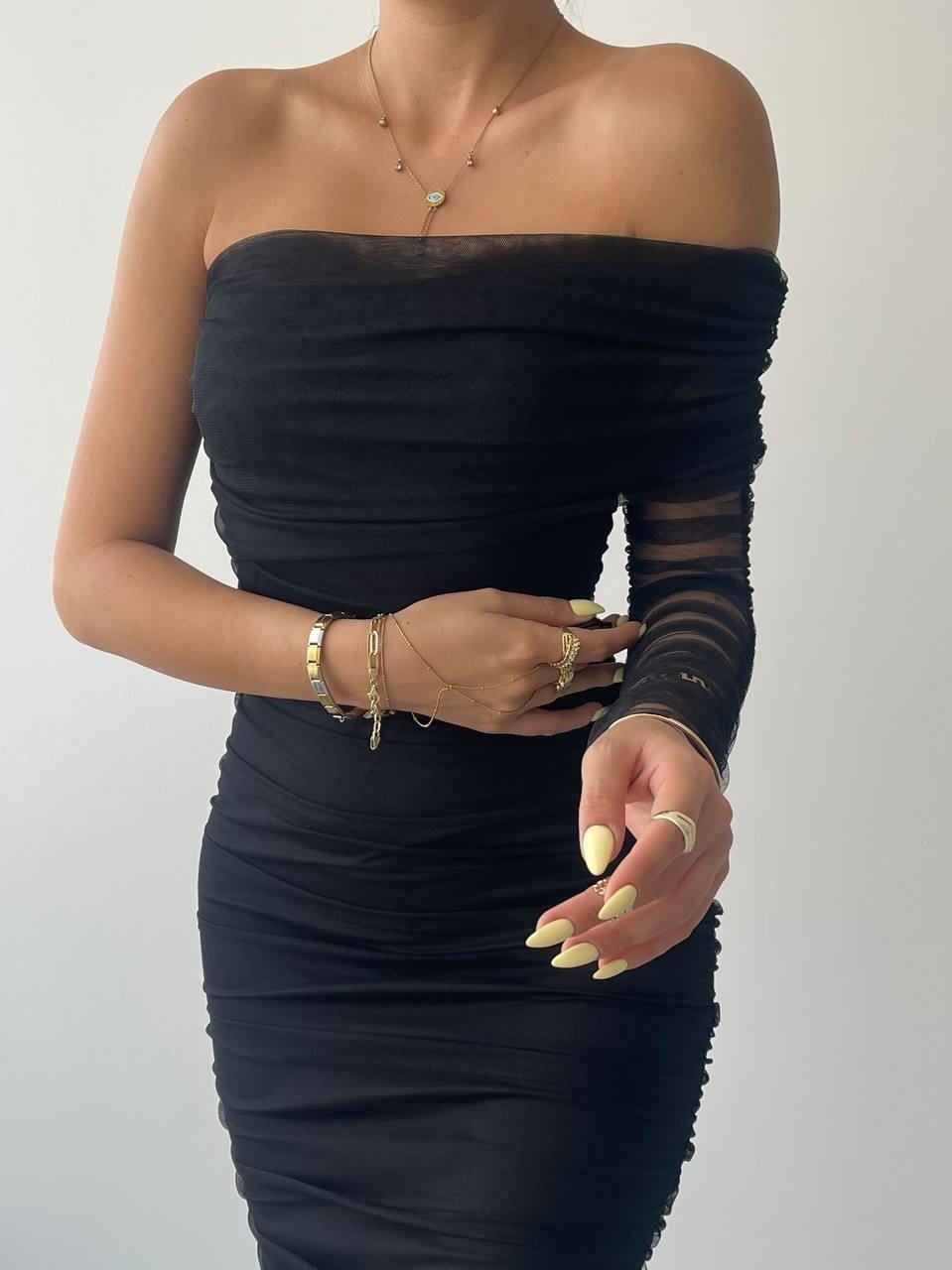 Polack Tek Omuz Tül Elbise