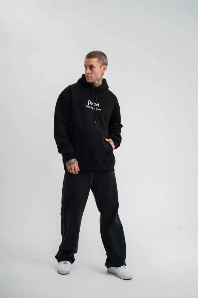 POLIZEI Premium Kalite Kapşonlu Dijital Patchli SweatShirt – Siyah