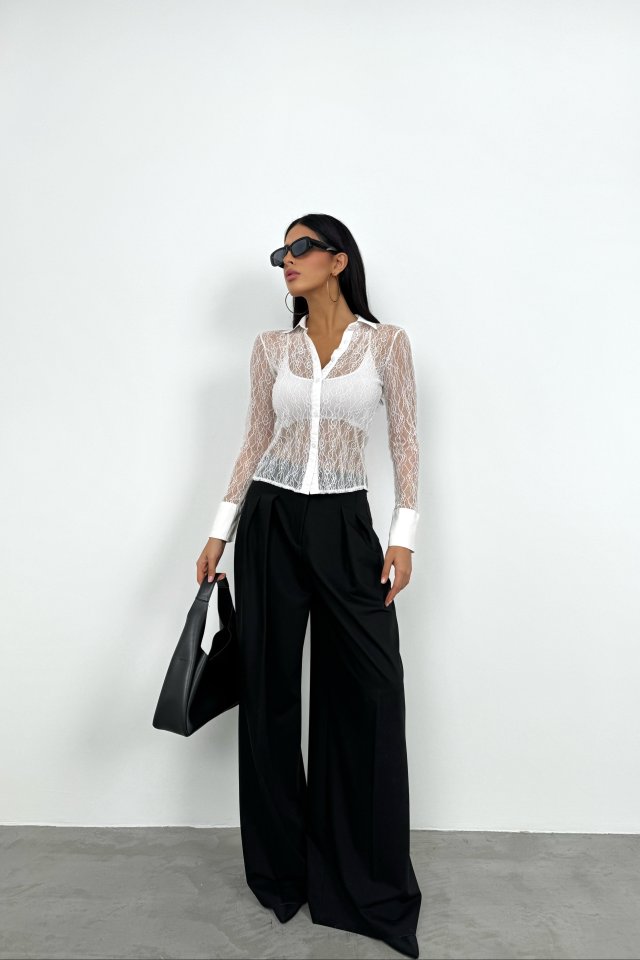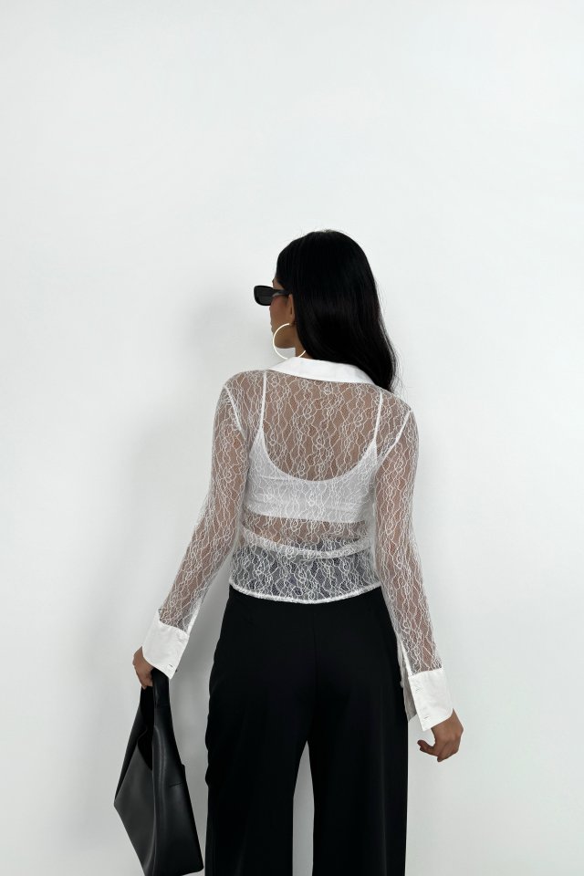 Polo Yaka Dantel Bluz