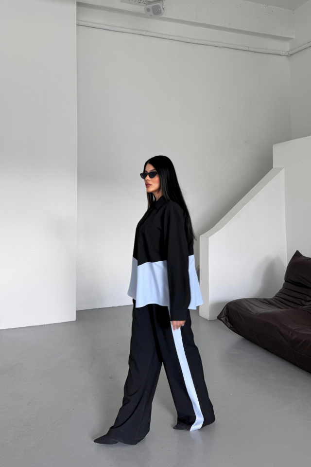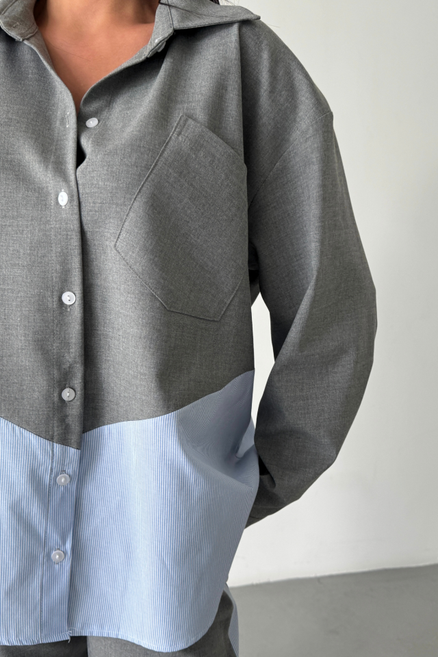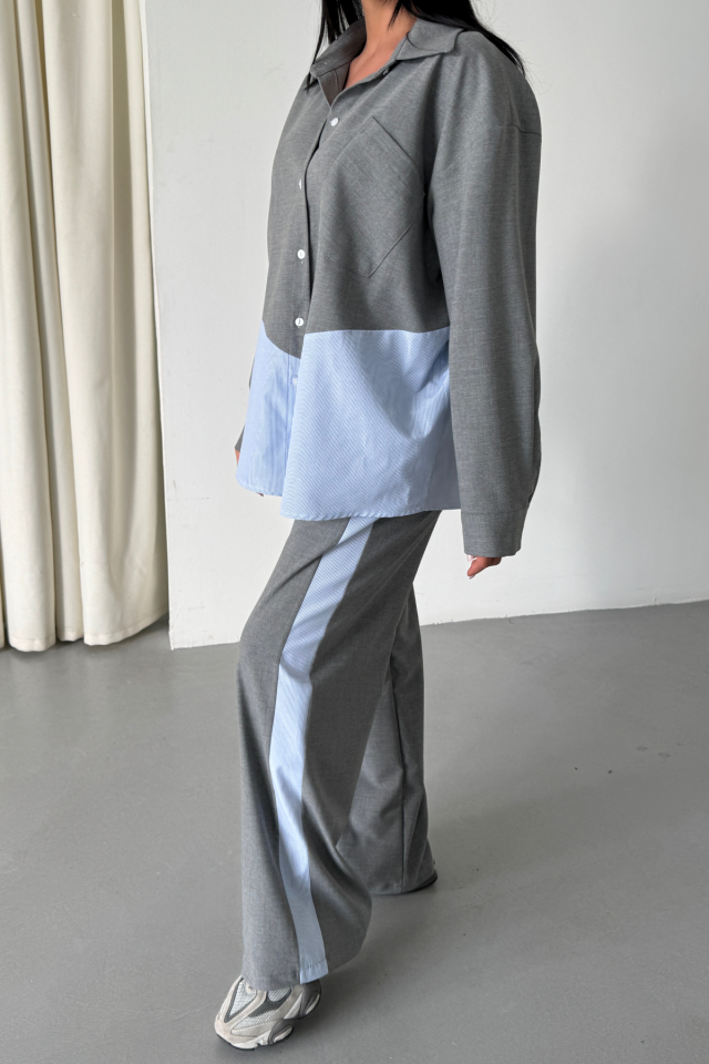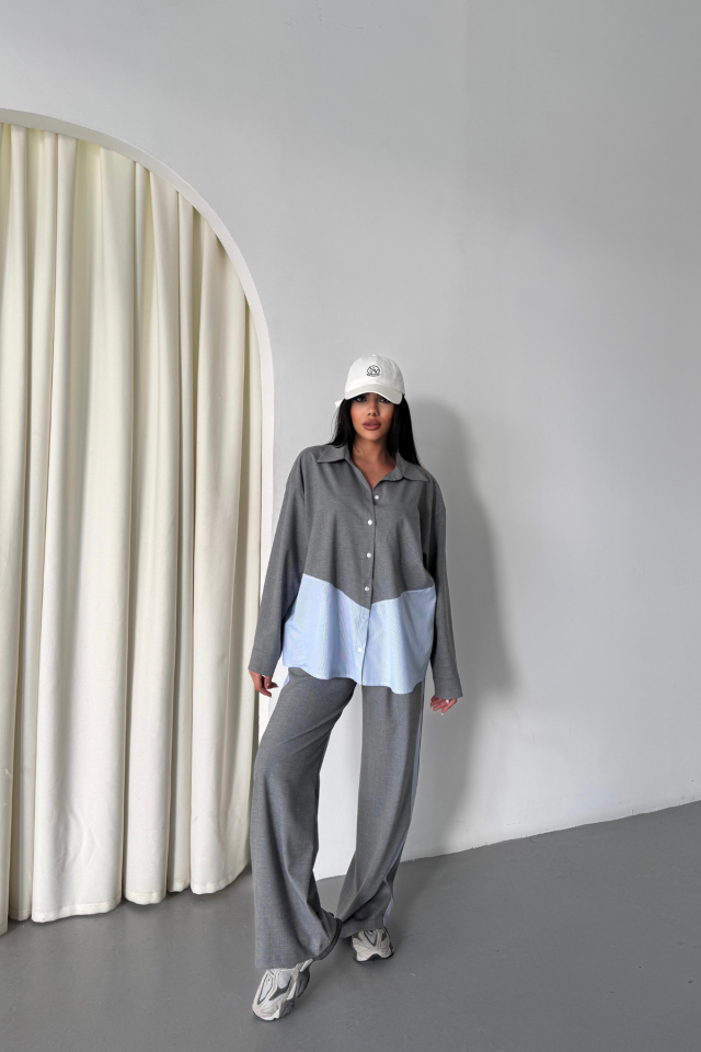 POLYVİSKON – POPLİN PARÇALI GÖMLEK PANTOLON TAKIM – Gri