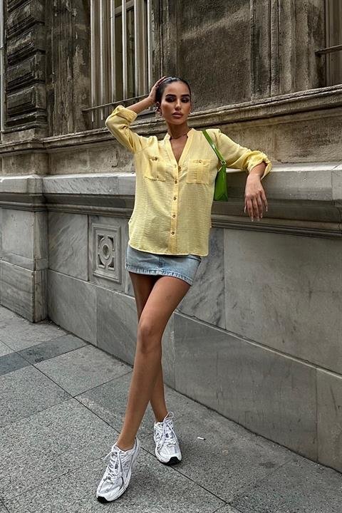Poulina Flamlı Keten Gömlek 3257-08
