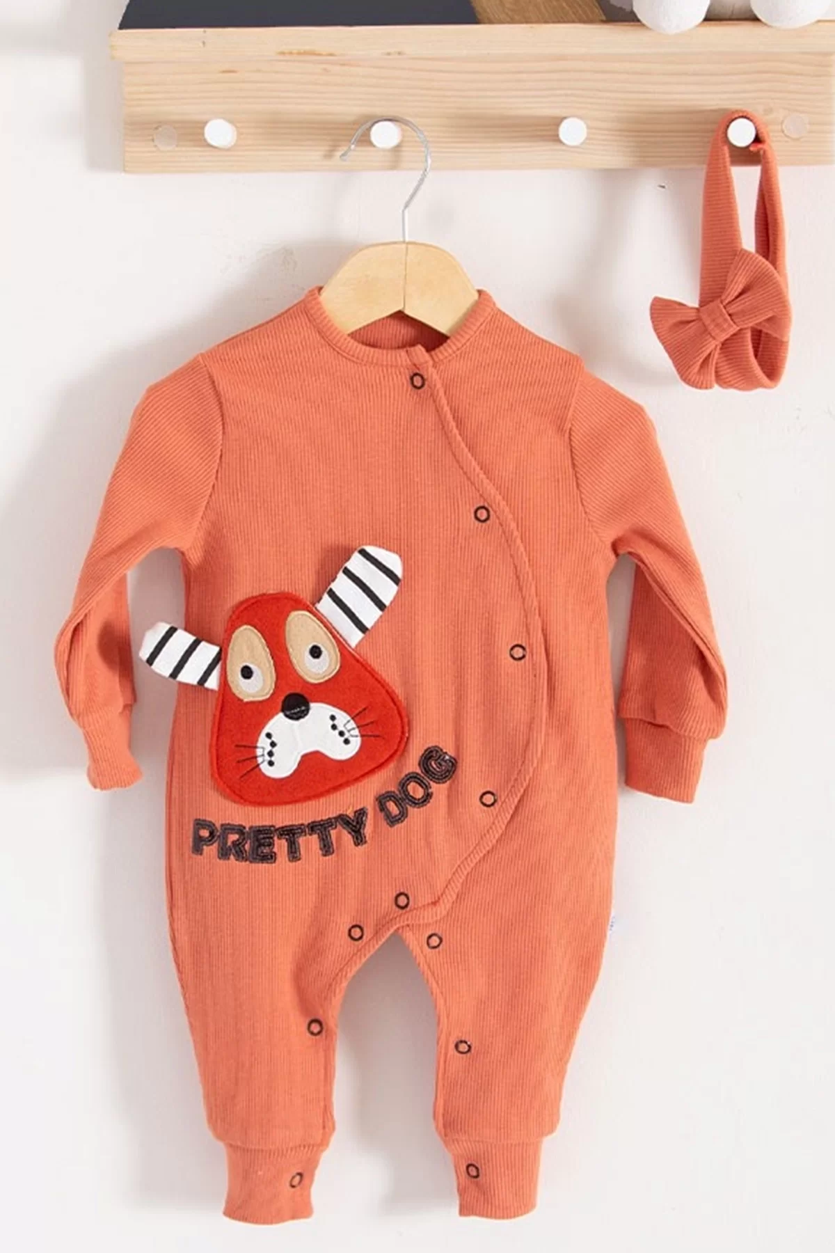 Pretty Dog Nakışlı Bandanalı % 100 Pamuk Kız Bebek Tulumu