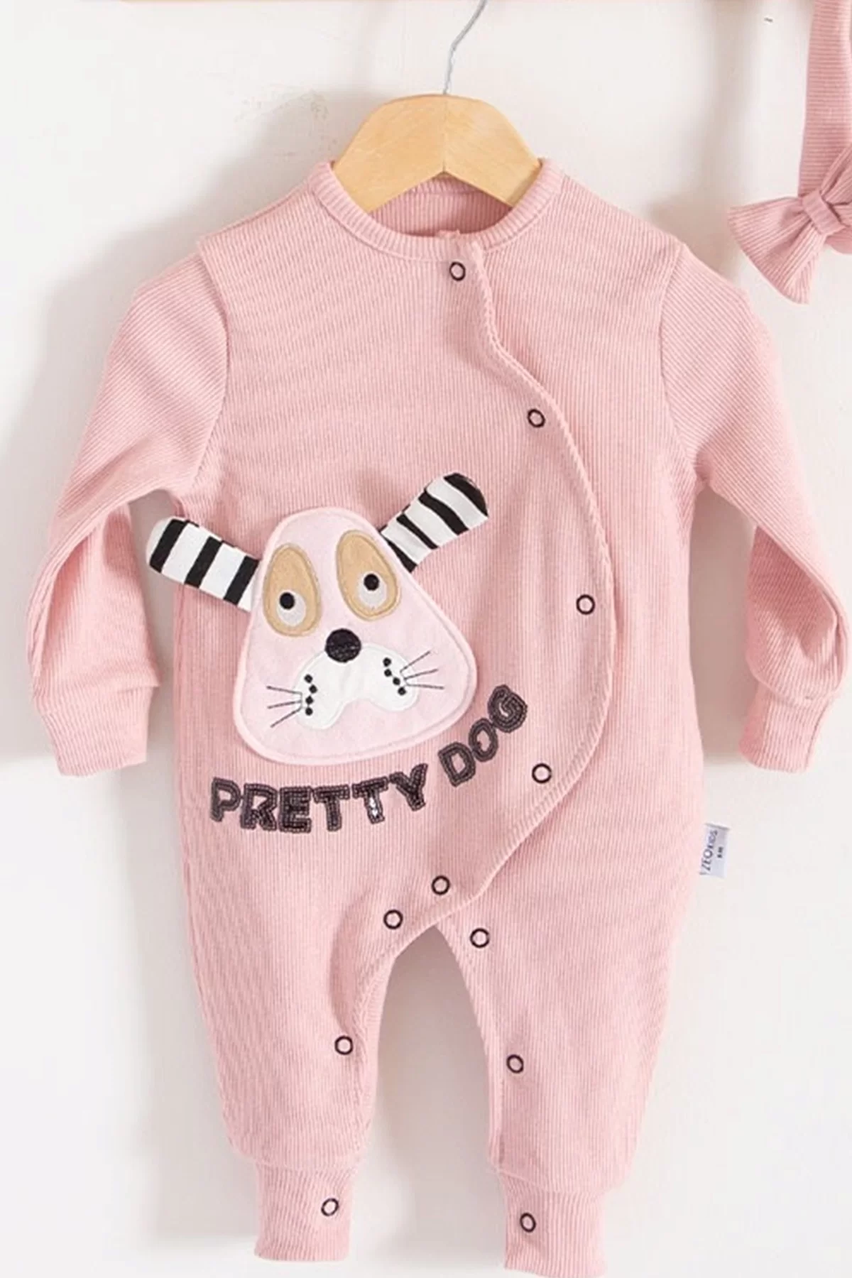 Pretty Dog Nakışlı Bandanalı % 100 Pamuk Kız Bebek Tulumu