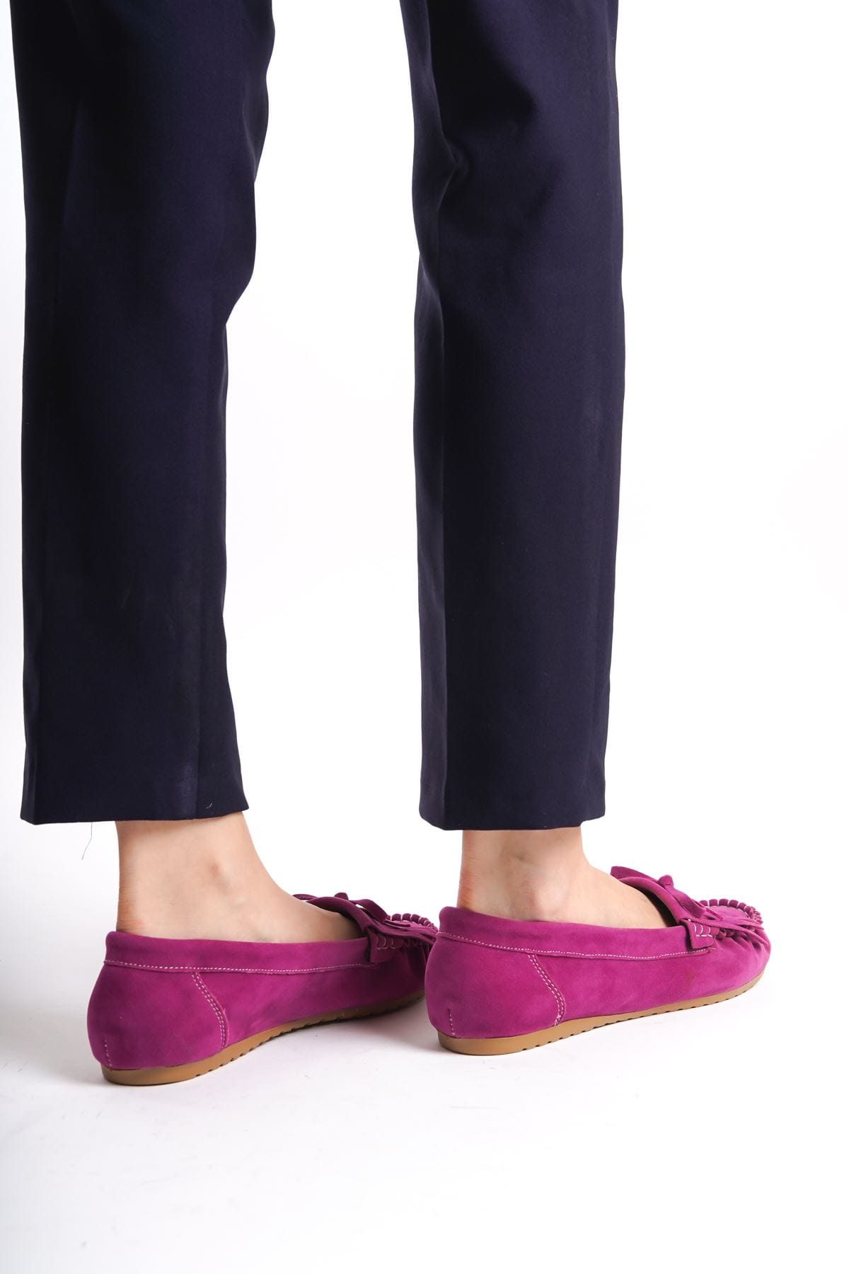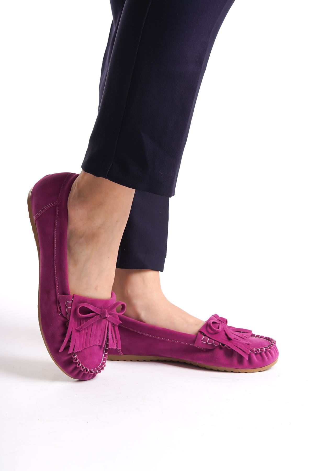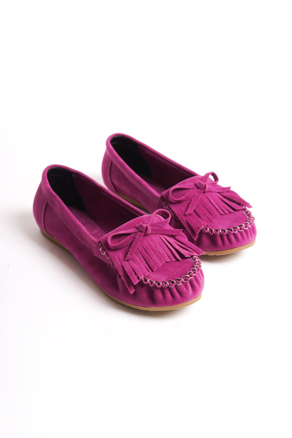 PS-100 Fuşya Süet Püsküllü Günlük Kadın Babet