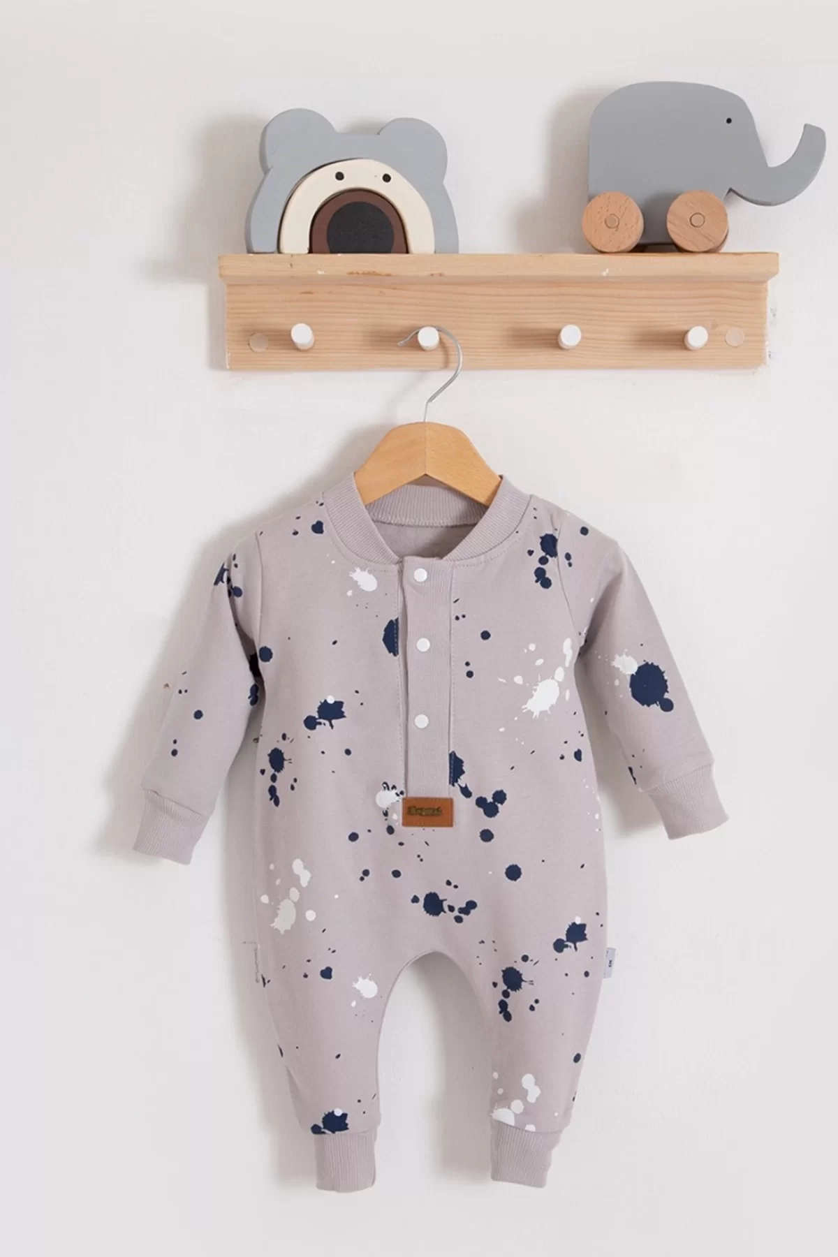 Puantiye Desenli Pamuklu Erkek Bebek Tulum