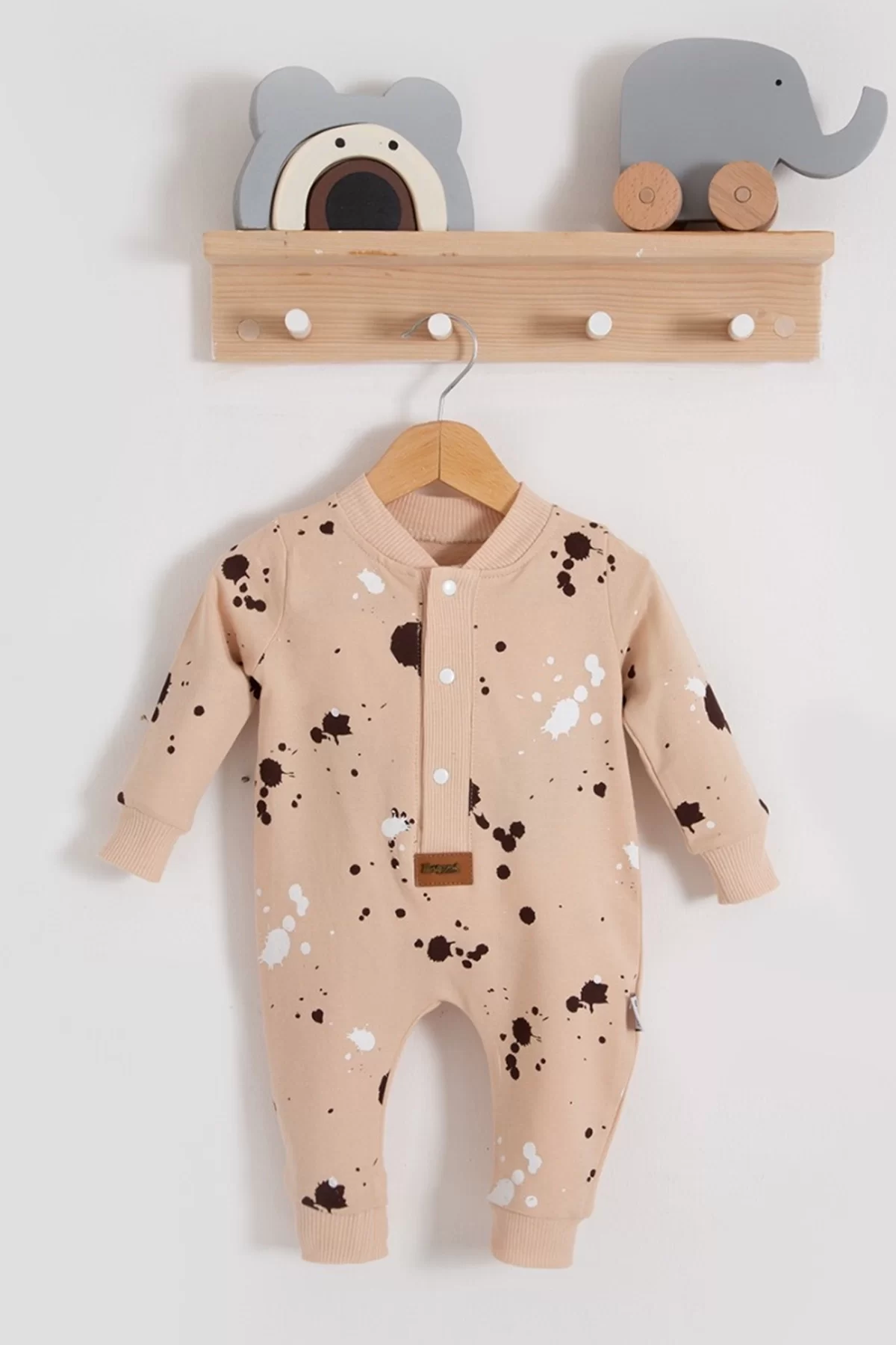 Puantiye Desenli Pamuklu Kız Bebek Tulum