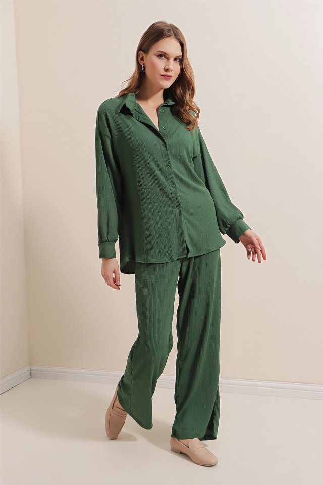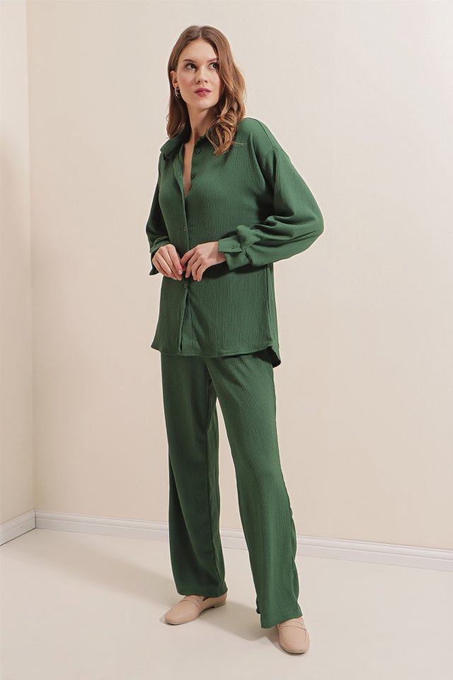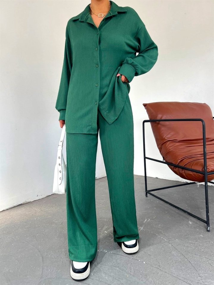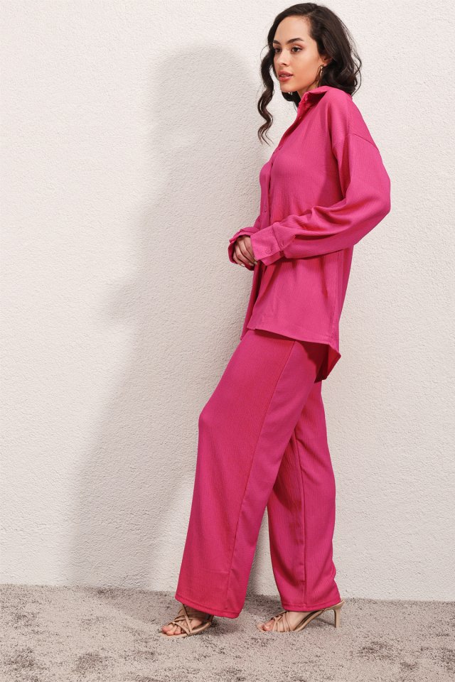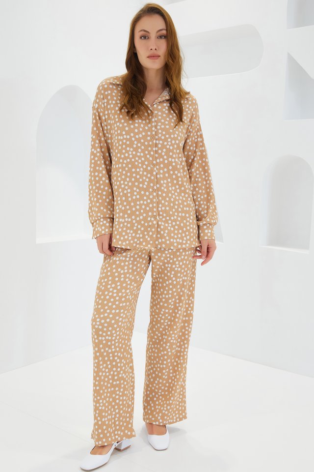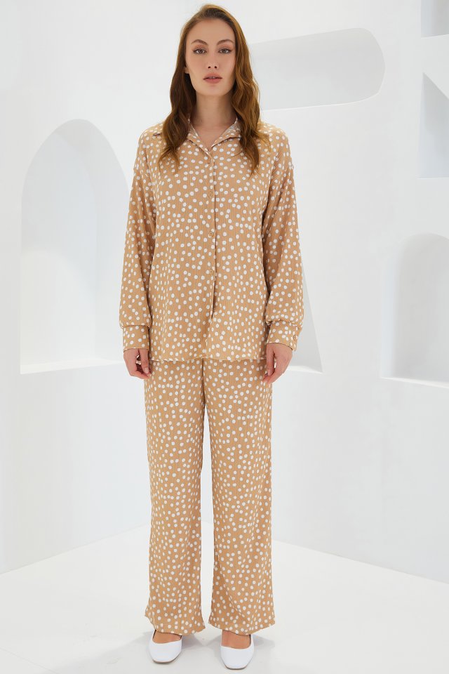 Puantiyeli Bej Ekru Örme İkili Takım 5858