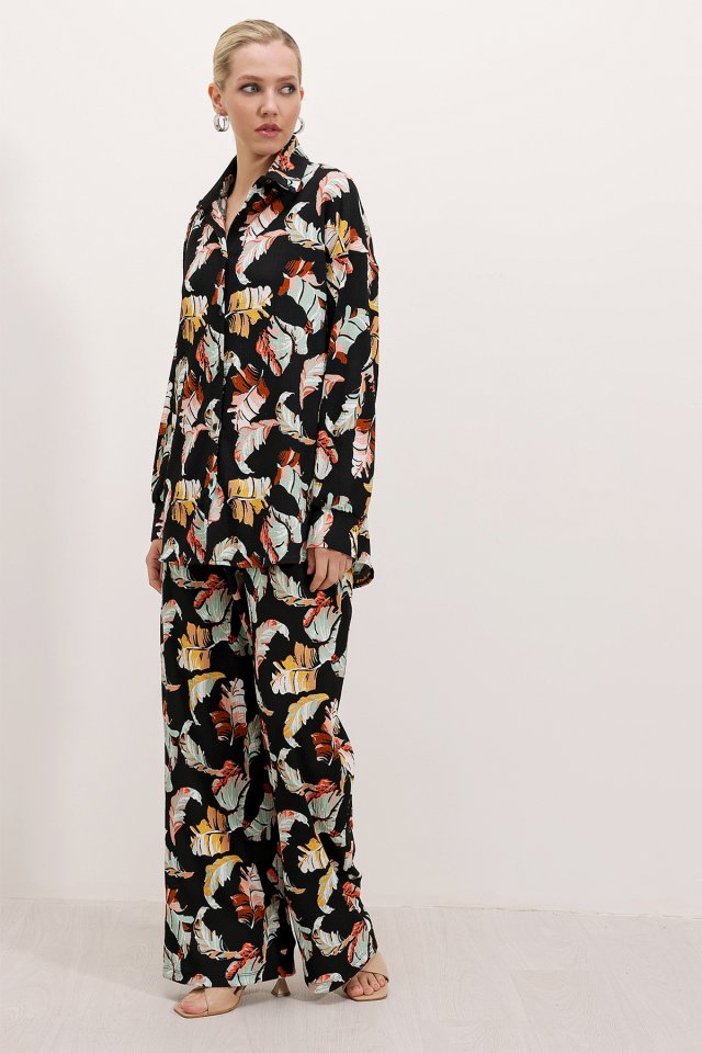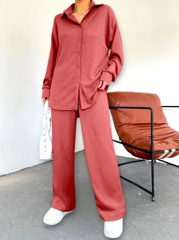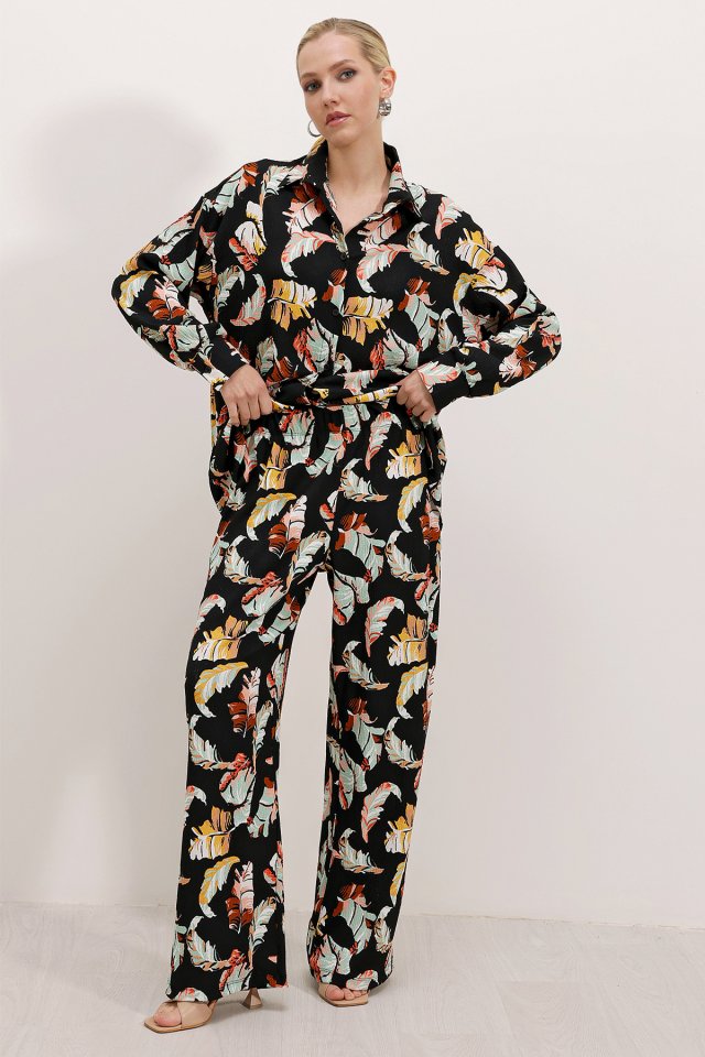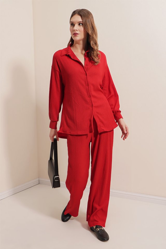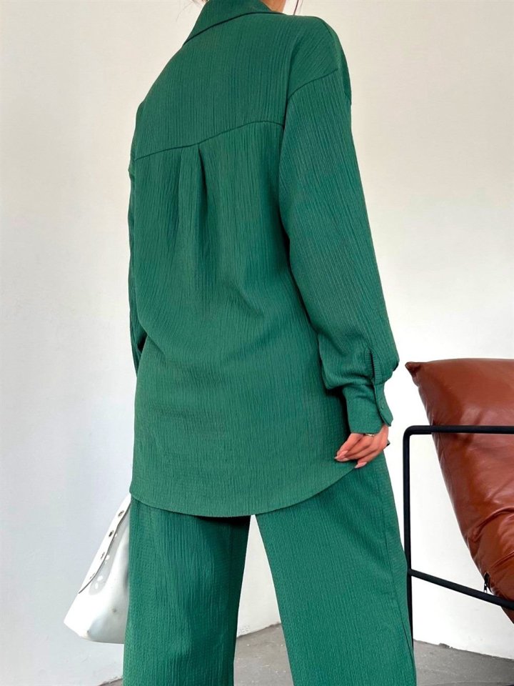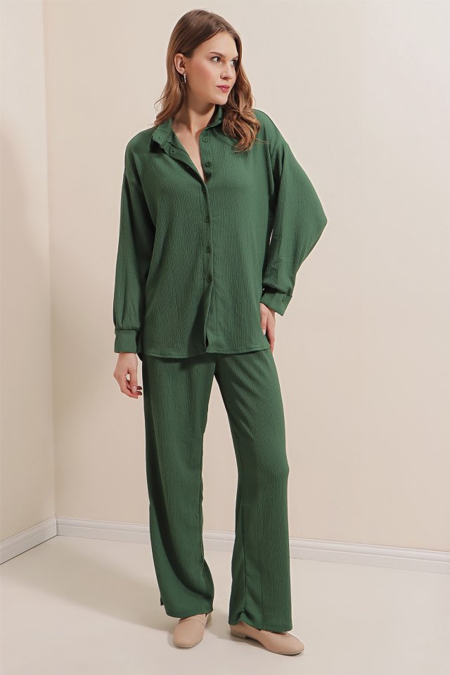 Puantiyeli Bej Ekru Örme İkili Takım 5858
