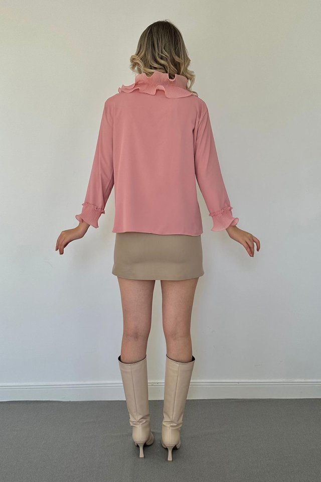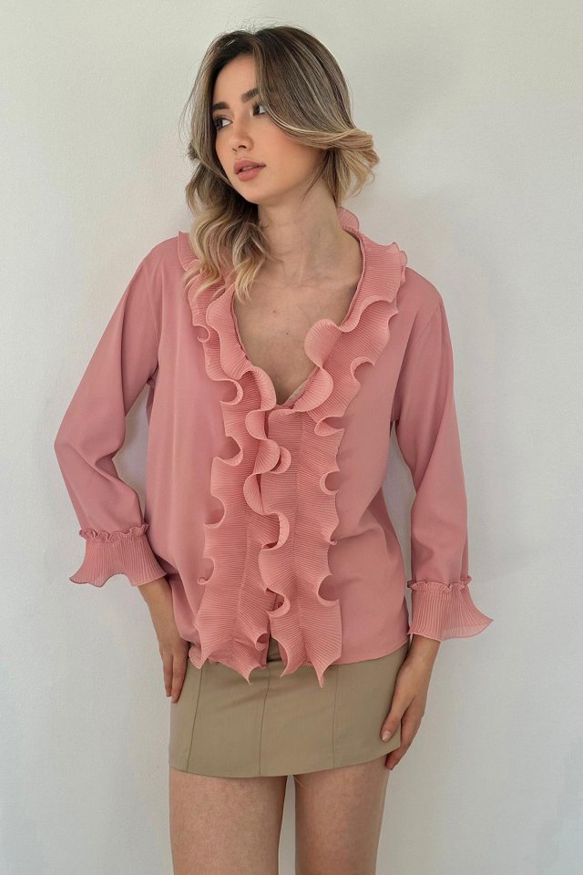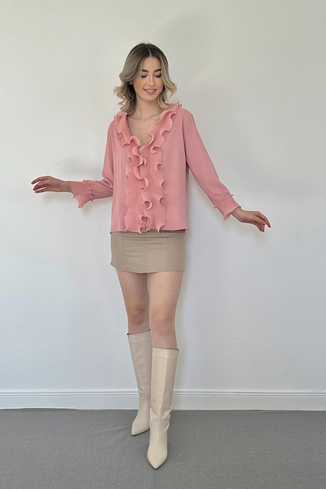 Pudra Yakası Volanlı Gömlek